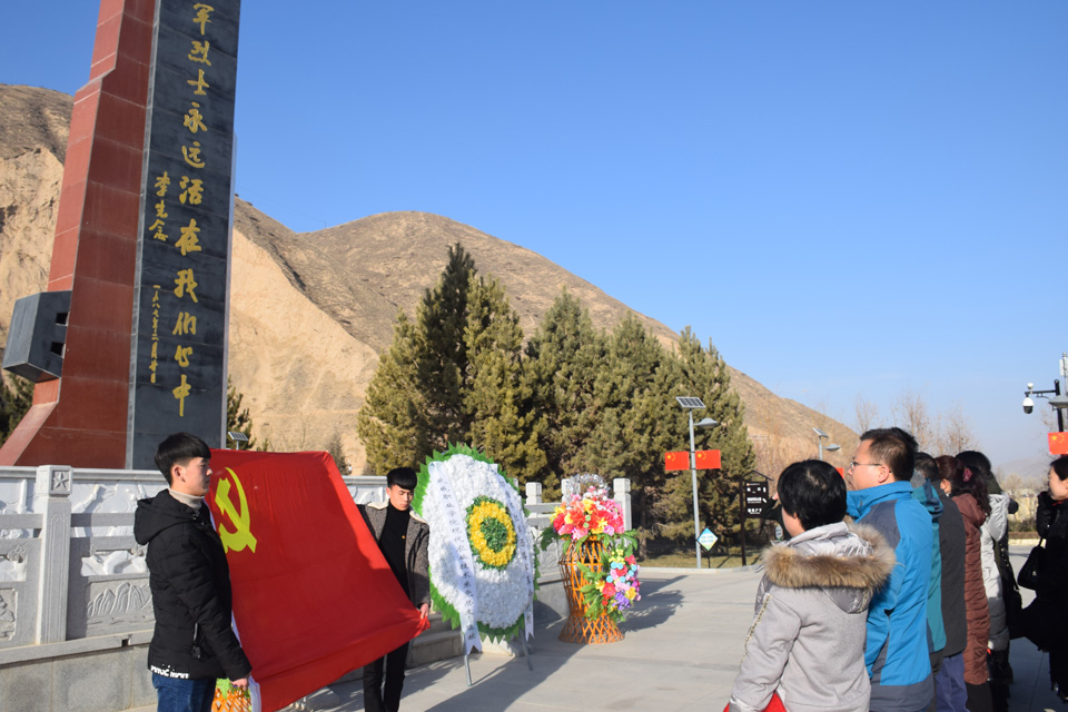全體人員首先參加了中國工農紅軍西路軍革命烈士陵園憑吊儀式。教師代表向烈士紀念碑敬獻花籃和花圈,全體人員向紀念碑鞠躬致敬,深刻表達了對革命先烈的緬懷之情。全體黨員在晏素珍同志的帶領下莊嚴向黨旗宣誓,重溫入黨誓詞,深刻表達對黨忠誠、積極努力工作的決心和信心。