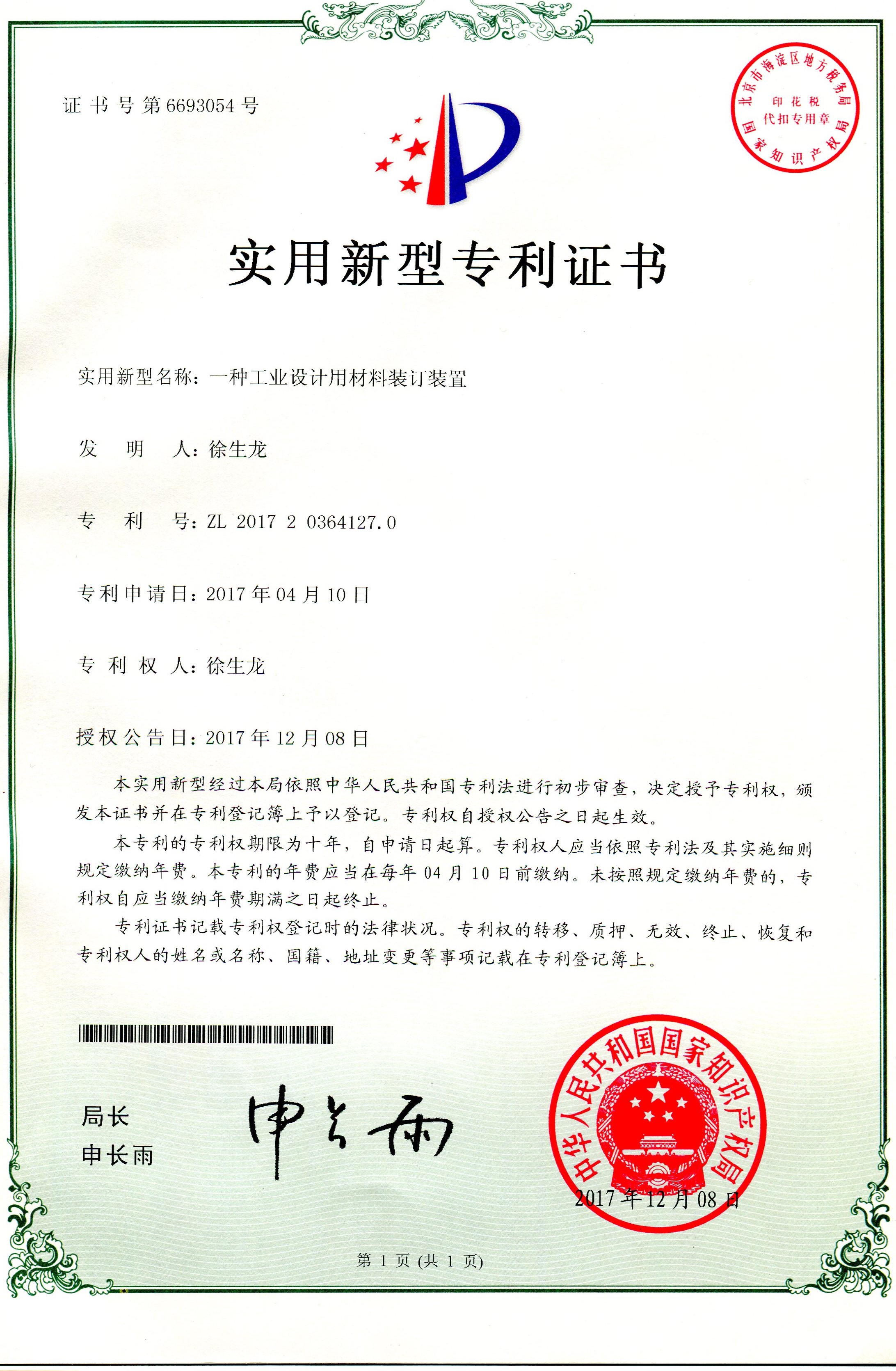 科研成果---實(shí)用新型專利:一種工業(yè)設(shè)計用材料裝訂裝置