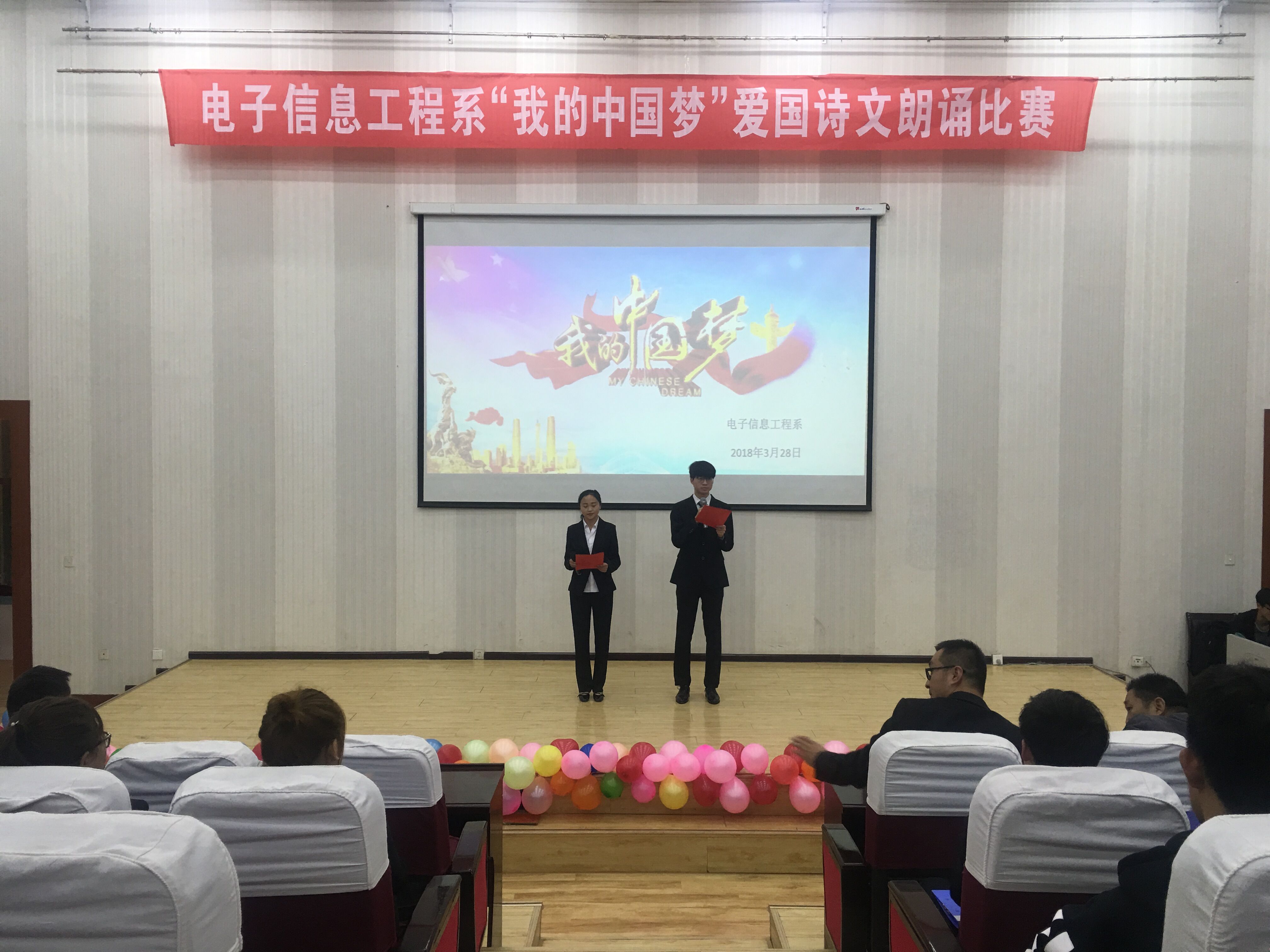 為進(jìn)一步弘揚(yáng)和培育社會主義核心價(jià)值觀,引導(dǎo)學(xué)生實(shí)現(xiàn)國家富強(qiáng)、民族復(fù)興的偉大“中國夢”而發(fā)憤圖強(qiáng)、勇?lián)厝危?/span>激勵學(xué)生通過誦讀經(jīng)典來繼承傳統(tǒng),增強(qiáng)學(xué)生的愛國情感。3月28日,電子信息工程系在正德廳舉辦了“我的中國夢”愛國詩文朗誦比賽。電子信息工程系黨總支書記袁青年、系主任李亞梅、全體班主任及學(xué)生觀看了比賽。