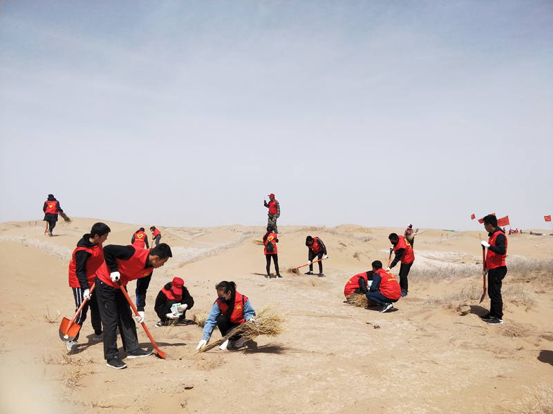 啟動儀式結(jié)束后,學(xué)院志愿者和來自社會各界的400多名志愿者在技術(shù)人員的指導(dǎo)下,嚴(yán)格按照栽植梭梭“挖深坑、樹栽中、三埋兩踩一提根”的技術(shù)操作要求,通力協(xié)作,密切配合,認(rèn)真做好挖坑、放梭梭、施肥、埋沙等各個環(huán)節(jié)的操作,有效保障了梭梭的成活率。經(jīng)過不懈努力,共栽植梭梭5萬余株,為拯救民勤綠洲貢獻(xiàn)了自己的青春力量。