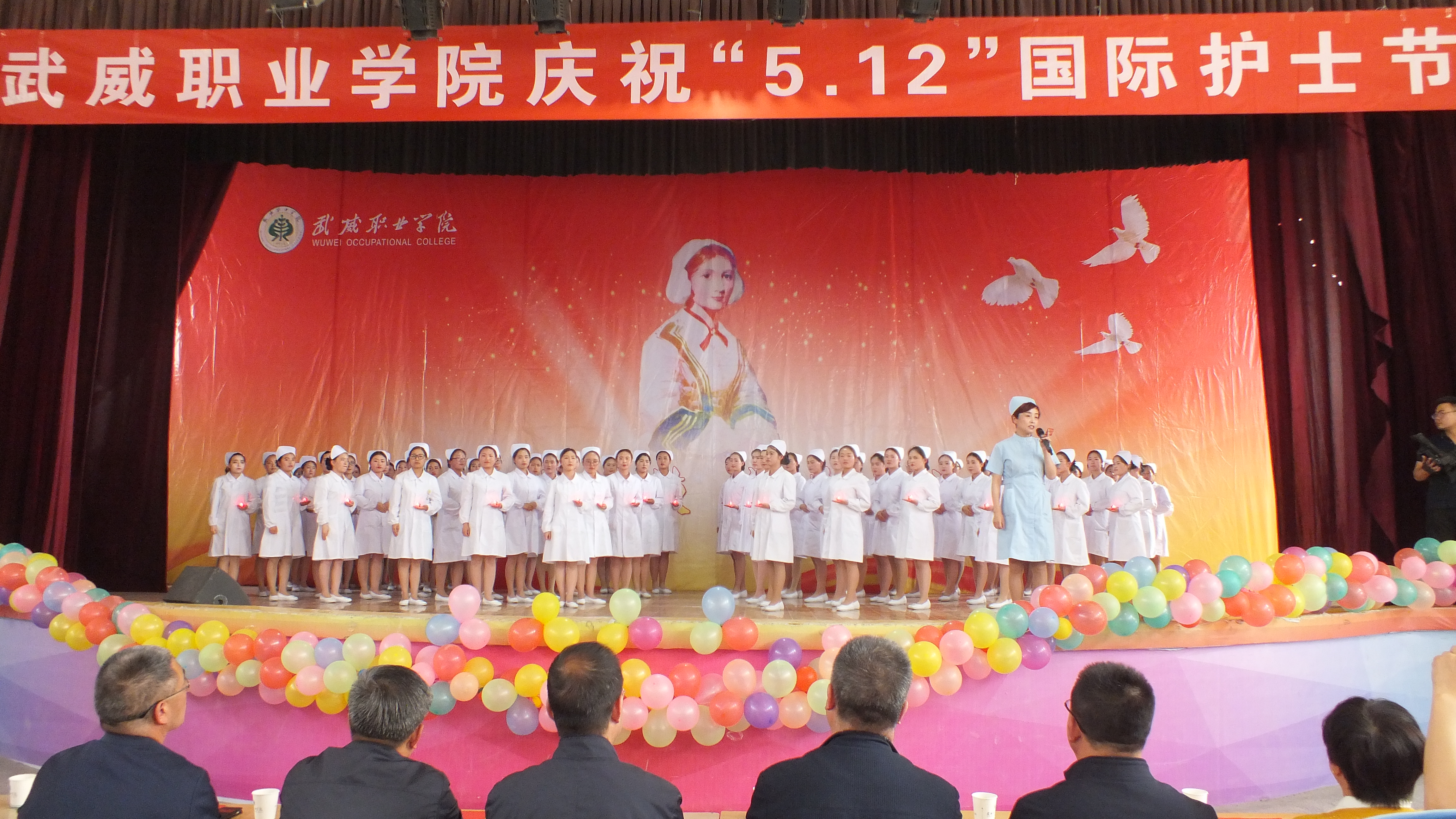 為了繼承和弘揚(yáng)南丁格爾精神,展示護(hù)理系師生良好精神風(fēng)貌和職業(yè)風(fēng)范,5.11日下午學(xué)院在大禮堂舉辦了“5.12”國際護(hù)士節(jié)慶祝活動,學(xué)院黨委副書記趙明、副院長翟存祥以及宣傳統(tǒng)戰(zhàn)部、學(xué)生工作處、教務(wù)處、院團(tuán)委、藥學(xué)系、醫(yī)技系領(lǐng)導(dǎo)及護(hù)理系全體師生1200余人參與了本次活動。