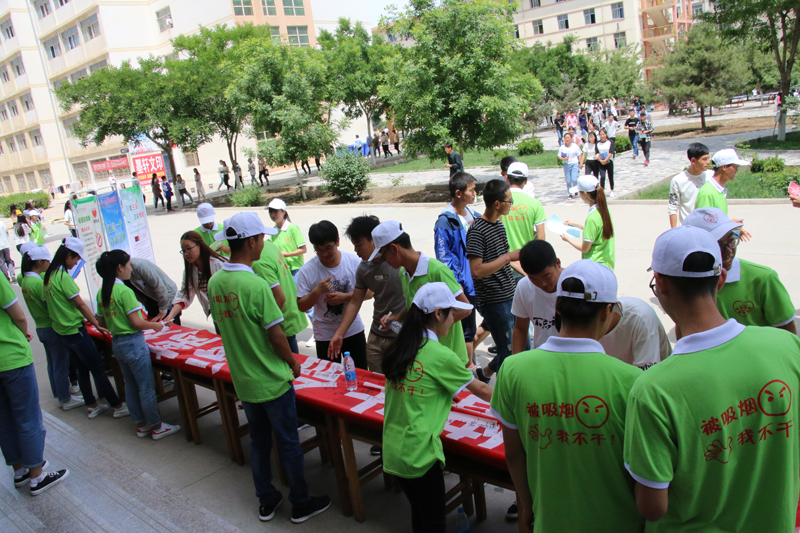 下午,100多名志愿者在學(xué)院一號(hào)、二號(hào)餐廳門口舉辦了 “世界無(wú)煙日”主題宣傳活動(dòng)?;顒?dòng)現(xiàn)場(chǎng),通過(guò)展板宣傳、資料發(fā)放、橫幅簽名、控?zé)焺窠獾刃问?,宣傳了吸煙的危害,推廣普及健康知識(shí),倡導(dǎo)無(wú)煙健康生活方式,呼吁全院師生拒絕煙草、控?zé)熉募s,為建設(shè)一個(gè)清新無(wú)煙的環(huán)境努力奮斗!志愿者們還開(kāi)展了撿拾煙頭活動(dòng),并在廁所、樓道等公共場(chǎng)所張貼禁煙、節(jié)水、光盤行動(dòng)等內(nèi)容的宣傳貼,以實(shí)際行動(dòng)助力文明校園創(chuàng)建、文明城市創(chuàng)建。
