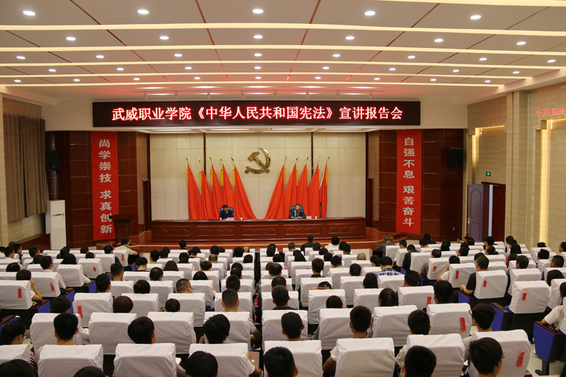 為深入推進(jìn)《中華人民共和國憲法》和《中華人民共和國憲法(修正案)》學(xué)習(xí)宣傳,提高廣大師生“學(xué)習(xí)憲法、尊崇憲法”的自覺性,6月7日,武威職業(yè)學(xué)院組織開展專題宣講活動,邀請市檢察院檢委會專職委員郝建宏檢察官來學(xué)院作宣講報告。學(xué)院領(lǐng)導(dǎo)班子成員,副科級以上干部及師生代表共220余人參加了宣講報告會。報告會由黨委副書記趙明主持。