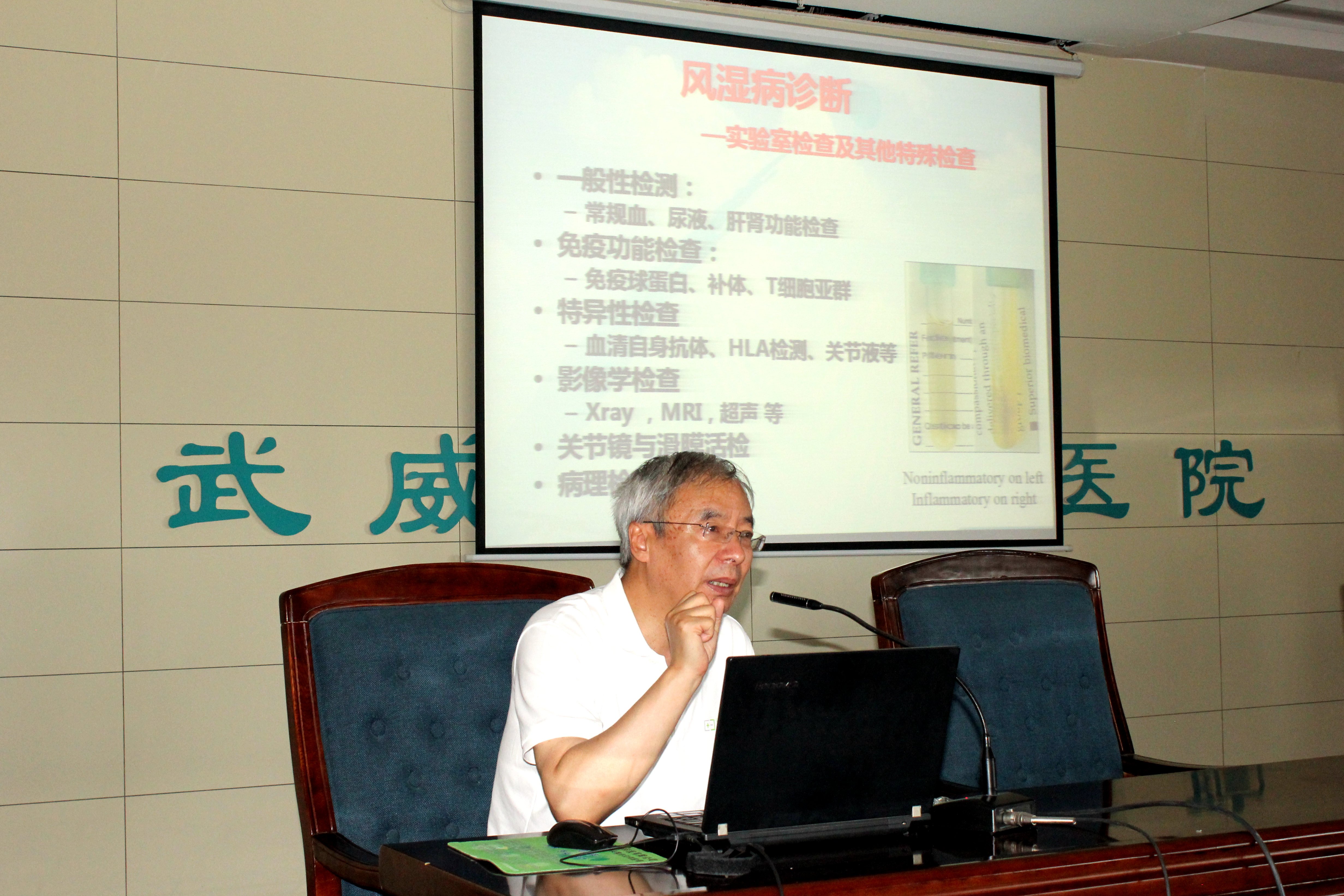 為提高醫(yī)務(wù)人員診治風(fēng)濕病的技術(shù)水平,學(xué)院直屬附屬醫(yī)院于6月29日下午,在內(nèi)科七樓會議室舉辦風(fēng)濕病診治學(xué)術(shù)報告會。醫(yī)院邀請?zhí)m大二院著名風(fēng)濕病專家王軼作“風(fēng)濕免疫實(shí)驗(yàn)室檢查”為題的學(xué)術(shù)報告,副院長張仁德主持會議,醫(yī)院各科室百余名醫(yī)療骨干參加學(xué)術(shù)會議聆聽報告。