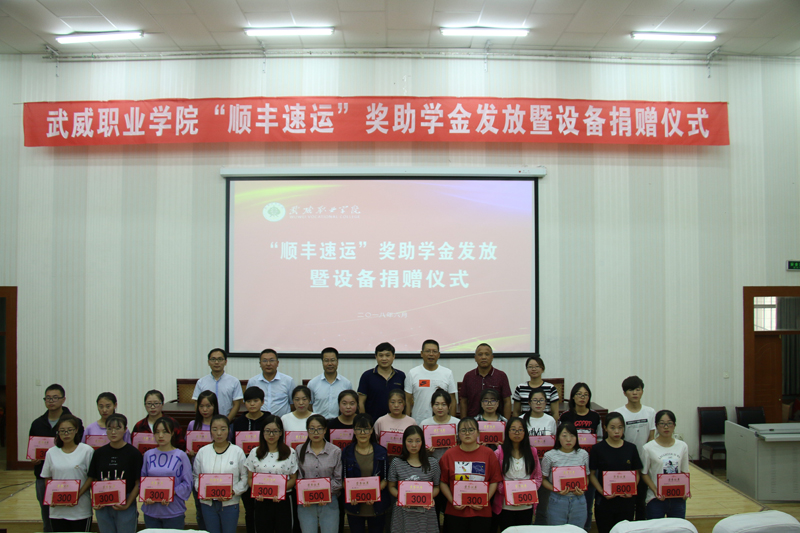 6月26日,武威職業(yè)學院“順豐速運”獎助學金發(fā)放暨設備捐贈儀式在學院正德廳舉行。江蘇順豐速運江蘇順豐通訊服務有限公司副總經(jīng)理張輝華先生,武威職業(yè)學院黨委委員、副院長王永緒同志、江蘇順豐通訊服務有限公司人力資源部經(jīng)理孫潞、項目經(jīng)理高國軍、招聘經(jīng)理明微、經(jīng)濟管理系書記潘從民、主任張伯成、物流專業(yè)教師代表和物流專業(yè)16、17級全體同學及相關專業(yè)學生代表近200人參加本次儀式。發(fā)放儀式由潘從民主持。