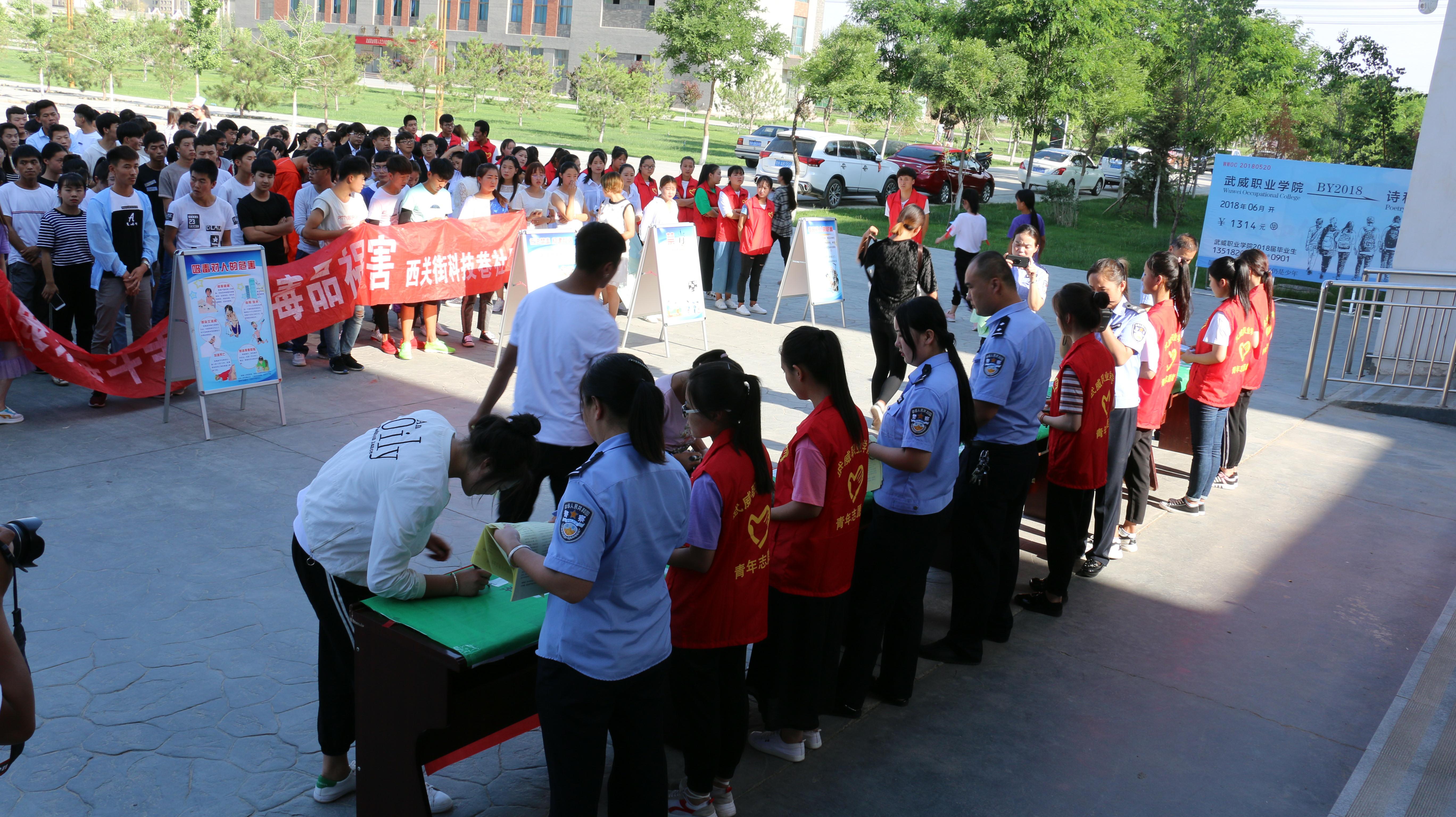 6月26日上午,學院組織50多名禁毒志愿者參加了全市“6.26”國際禁毒日大型主題宣傳活動。下午,學院相關部門聯(lián)合轄區(qū)派出所在大學生活動中心前舉行了“6.26”國際禁毒日主題宣傳活動。