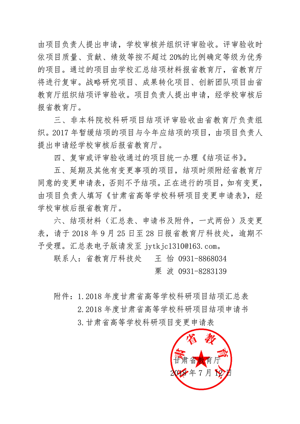 甘肅省教育廳關(guān)于對2018年度甘肅省高等學(xué)??蒲许椖窟M行結(jié)項的通知(附件).doc