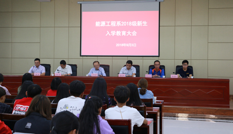 9月3日下午,能源工程系在行樹樓北側(cè)舉行報(bào)告廳2018級新生入學(xué)教育大會,全系教師及2018級166名新生參加了此次大會。會議由能源工程系政治輔導(dǎo)員、團(tuán)總支書記侯舵主持。