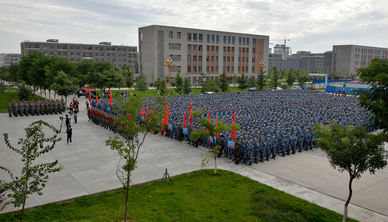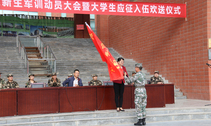 大會(huì)現(xiàn)場(chǎng),田迎春向承訓(xùn)單位授予軍訓(xùn)團(tuán)旗。大會(huì)在雄壯的《中國人民解放軍軍歌》聲中拉開了軍訓(xùn)序幕。