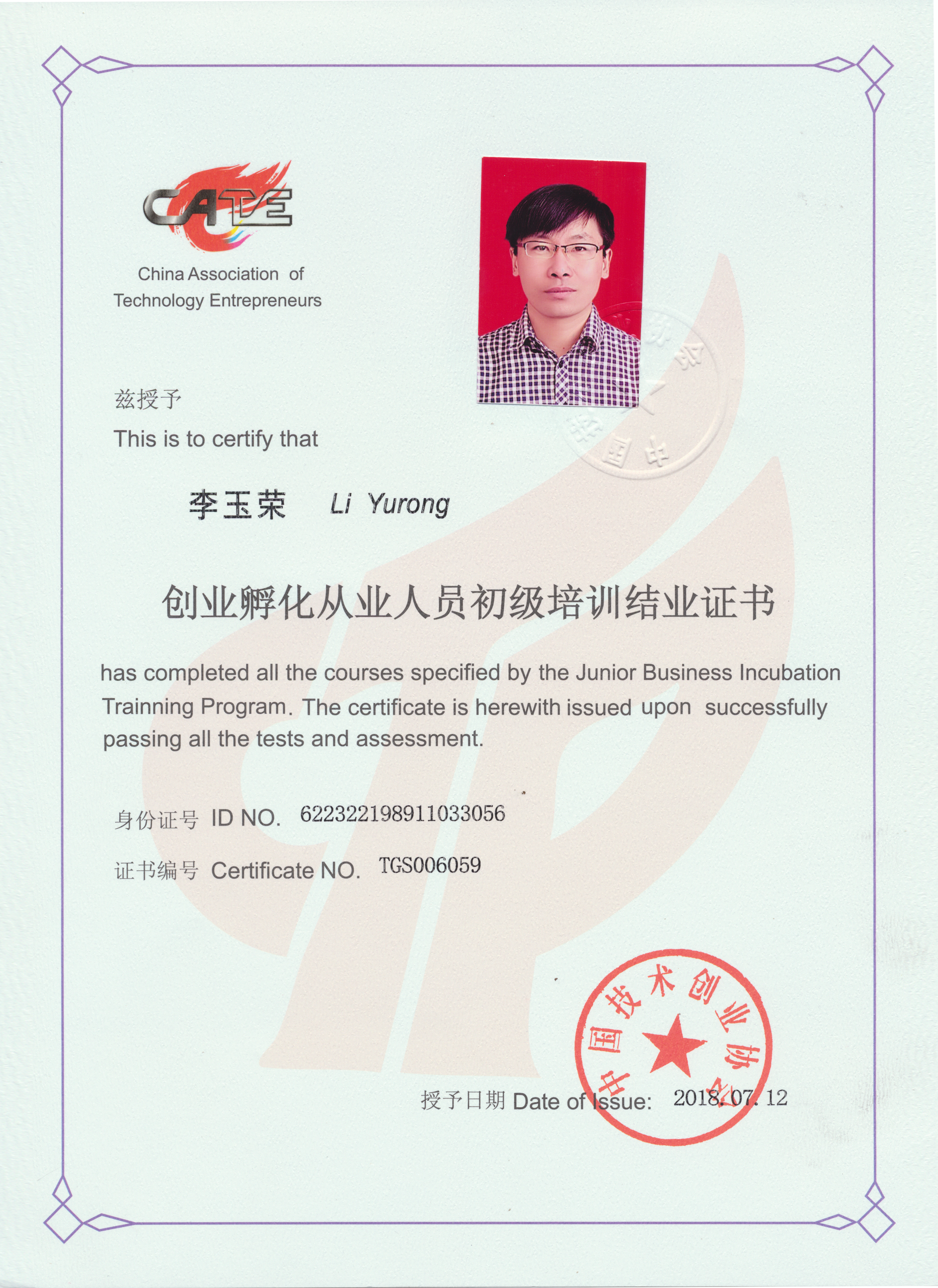 創(chuàng)業(yè)孵化從業(yè)培訓結業(yè)證書
