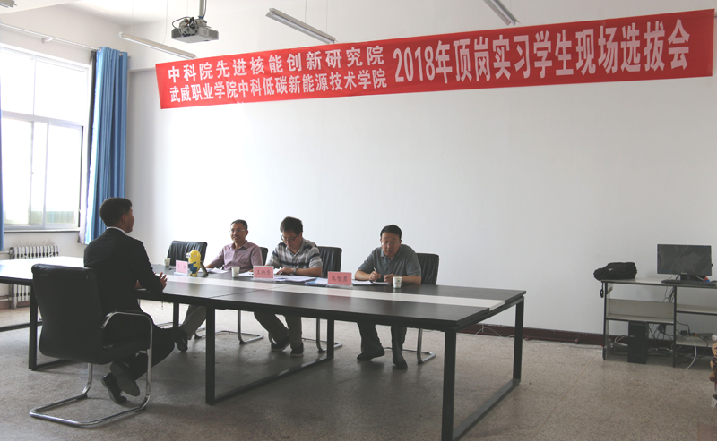 ? ? ? ?2018年6月21日,中國科學(xué)院先進核能創(chuàng)新研究院在學(xué)院舉行了2018年頂崗實習(xí)學(xué)生現(xiàn)場選撥會,由中科院先進核能創(chuàng)新研究院綜合管理部常務(wù)副主任王納秀、熔鹽機械部熱工組組長王曉和中科武威新能源研究所所長朱智勇組成的專家組對能源類專業(yè)和機械類專業(yè)學(xué)生進行了現(xiàn)場面試,遴選出的14名同學(xué)將于7月份前往中國科學(xué)院先進核能創(chuàng)新研究院進行為期一年的專業(yè)頂崗實習(xí),他們將在中科院先進核能創(chuàng)新研究院專家教授的帶領(lǐng)下,通過一對一指導(dǎo)和崗位輪訓(xùn)等形式全面系統(tǒng)完成頂崗實習(xí),了解行業(yè)技術(shù)需求和技術(shù)最新進展,掌握更多的專業(yè)知識和實踐技能,感受頂級科研院所深厚的科技氛圍和文化氛圍,全面提升專業(yè)水平和綜合素養(yǎng),為成功走向社會奠定良好的基礎(chǔ)。