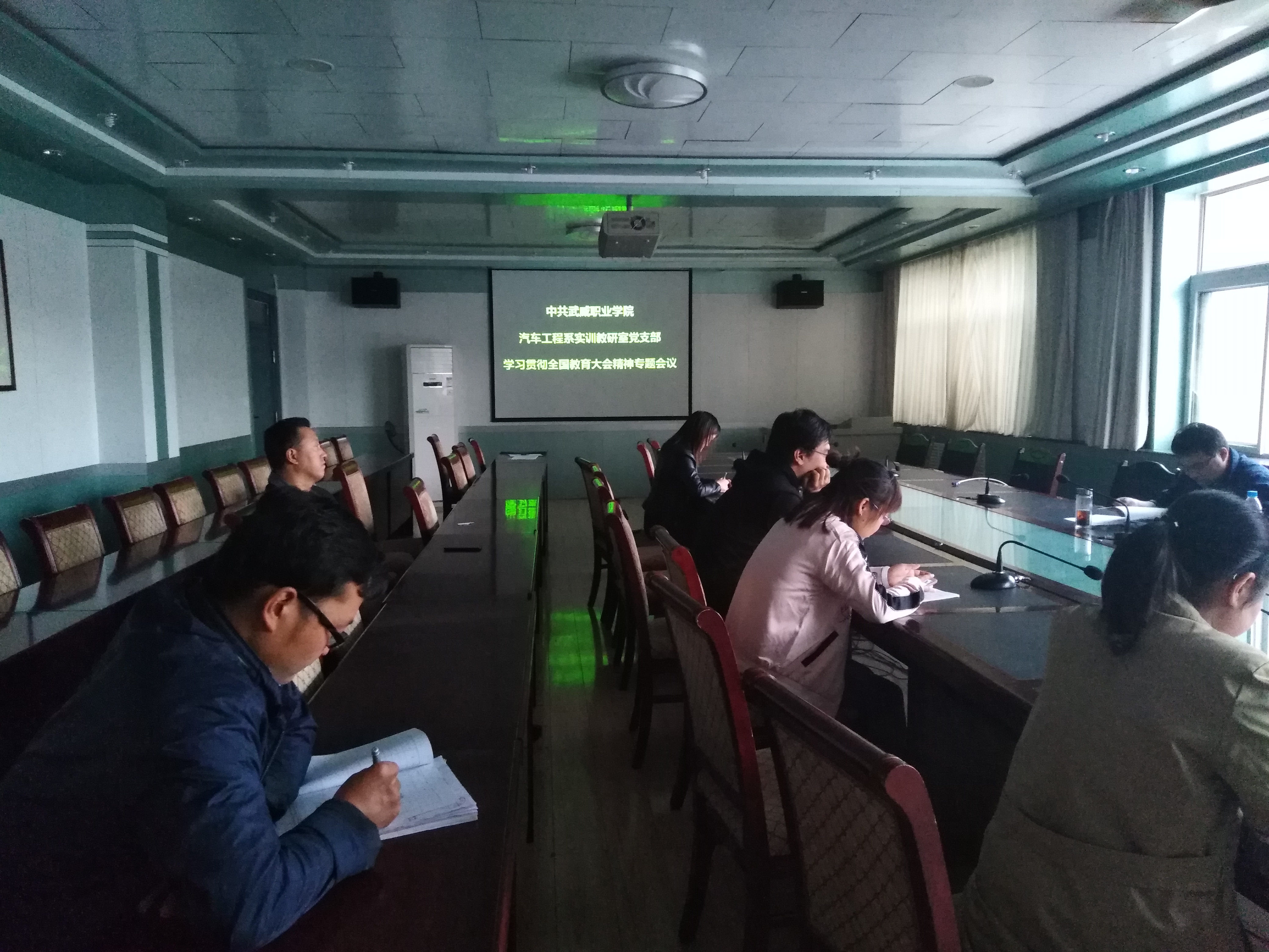 9月18日下午,汽車(chē)工程系實(shí)訓(xùn)教研室黨支部在博學(xué)樓二樓會(huì)議室召開(kāi)全體黨員大會(huì),專(zhuān)題學(xué)習(xí)2018全國(guó)教育大會(huì)精神。