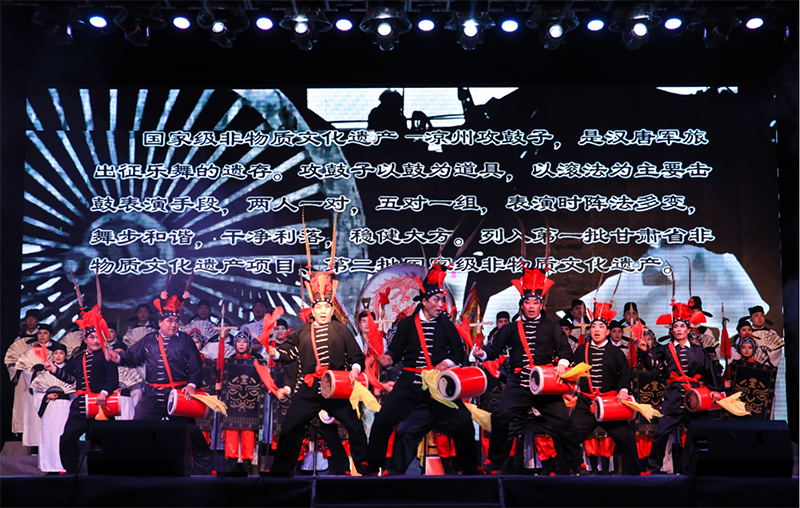 近年來,學院師生創(chuàng)作、改編了許多反映地方特色和校園生活主題的節(jié)目。其中晚會上由我院教師自編原創(chuàng)的大型吟誦舞臺劇《金戈鐵馬入夢涼州》邀請了國家級非物質文化遺產涼州攻鼓子助力表演,結合戲曲、舞蹈、器樂等形式,全方位展示了涼州文化深厚的底蘊和鮮明的地域特色,涼州攻鼓子表演更是蕩氣回腸,讓現場師生充分領略了傳統文化的博大精深和獨特魅力。大學生藝術團主持隊自編自演的詩歌朗誦《青春報告》,結合當代大學生青春夢想、歷史使命的創(chuàng)作和聲情并茂的演繹,體現了新青年對于理想與擔當的全新解讀。大學生藝術團曲藝隊自導改編的相聲《新生入學指南》,以詼諧幽默的形式講解了大一新生入學后的趣味生活,贏得了新同學們的共鳴和陣陣掌聲。