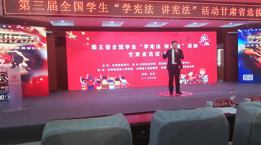 10月15日至19日,由省教育廳主辦的第三屆全國(guó)學(xué)生“學(xué)憲法講憲法”活動(dòng)甘肅省選拔賽在甘肅政法學(xué)院舉行,來(lái)自全省的127名選手參加比賽。省教育廳副廳長(zhǎng)趙凱出席頒獎(jiǎng)儀式并為獲獎(jiǎng)集體和個(gè)人頒獎(jiǎng)。