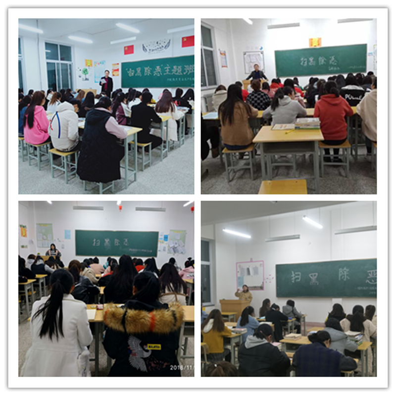 各班班主任精心準(zhǔn)備,帶領(lǐng)學(xué)生學(xué)習(xí)“掃黑除惡”宣傳材料。重點針對“校園貸”、“老鄉(xiāng)會”、“黃賭毒”、校園欺凌和網(wǎng)絡(luò)威脅等違法犯罪行為進(jìn)行深刻剖析,并提出了行之有效的防范措施,確保師生人身和財產(chǎn)安全。