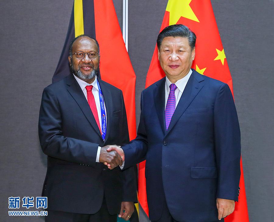 11月16日,國家主席習近平在莫爾茲比港分別會見建交太平洋島國領導人。這是習近平會見紐??偫硭?新華社記者 丁林 攝