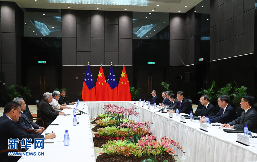 在會見薩摩亞總理圖伊拉埃帕時,習近平指出,當前中薩關系面臨新的發(fā)展機遇。雙方要秉持高度政治互信,繼續(xù)在涉及彼此核心利益和重大關切問題上相互支持,在“一帶一路”框架內拓展各領域合作,擴大人文交流。中方支持薩摩亞舉辦2019年太平洋運動會,將繼續(xù)支持薩方提高應對氣候變化能力。