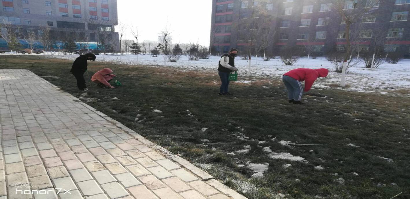活動(dòng)期間,由系輔導(dǎo)員齊斌文老師和班主任帶領(lǐng)同學(xué)們準(zhǔn)備好工具準(zhǔn)時(shí)在各區(qū)域集合,對校園內(nèi)煙頭、垃圾進(jìn)行撿拾,為全院師生營造了良好的學(xué)習(xí)氛圍。