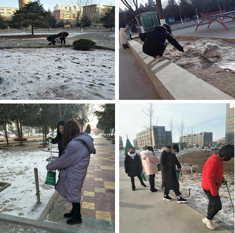 活動期間,由系輔導(dǎo)員齊斌文老師和班主任帶領(lǐng)同學(xué)們準備好工具準時在各區(qū)域集合,對校園內(nèi)煙頭、垃圾進行撿拾,為全院師生營造了良好的學(xué)習氛圍。