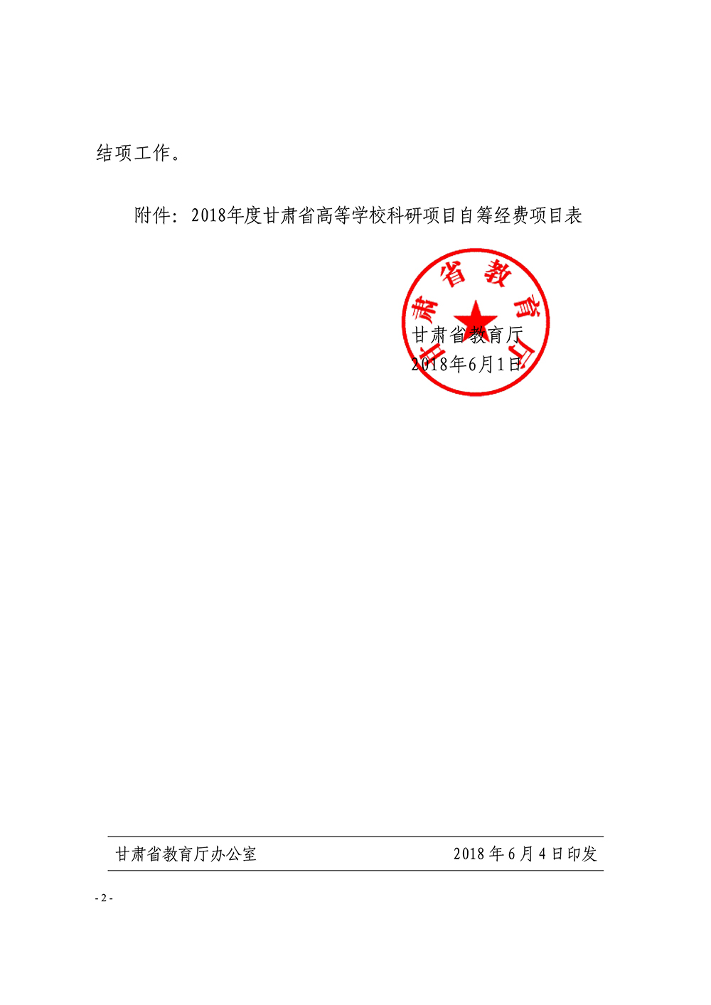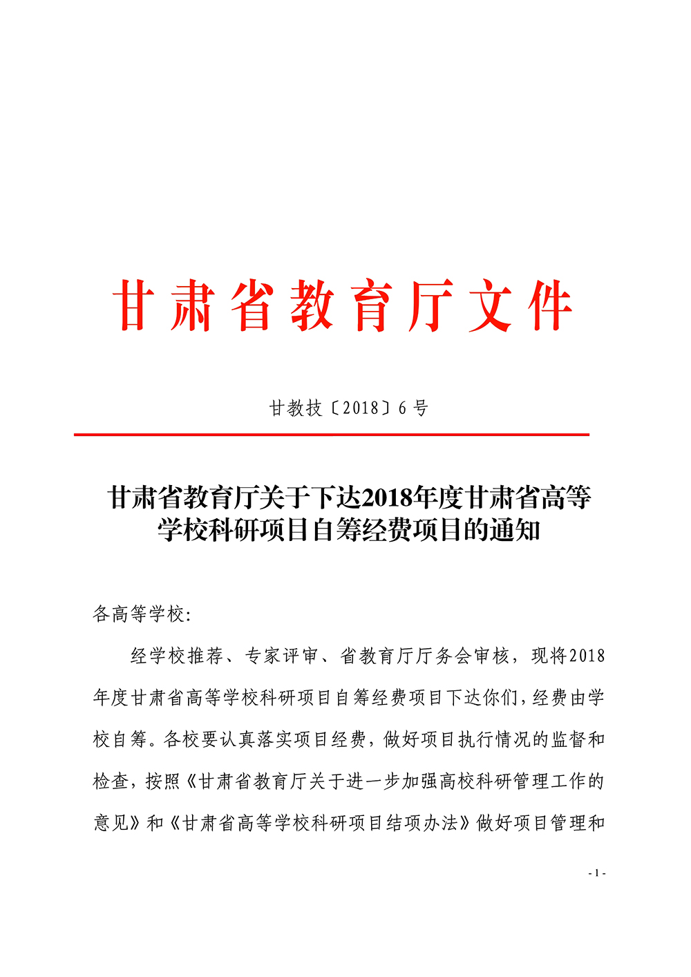 甘肅省教育廳關于下達2018年度甘肅省高等學校科研項目自籌經費項目的通知
