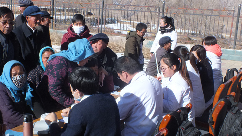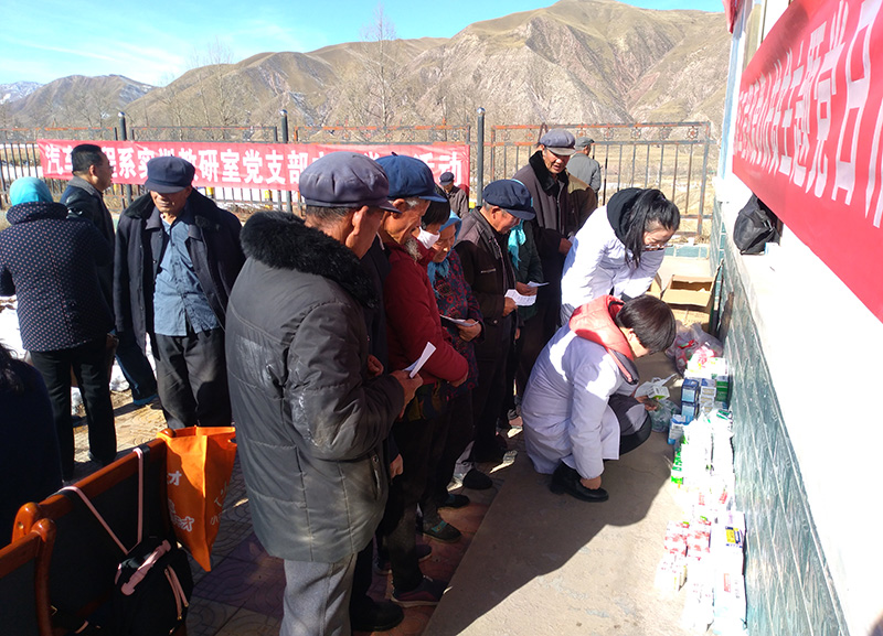 到達目的地后,黨員們不顧辛勞,分成兩組,一組由護理系黨總支書記張建輝帶領(lǐng)前往臥病在床的扶貧對象家里,親切詢問病情及家里近況,送上常備藥品。另一組在當(dāng)?shù)卮宀窟M行義診活動,醫(yī)護人員仔細(xì)給村民們進行體檢,耐心解答、細(xì)心診治;對前來問診的村民認(rèn)真進行血壓、血糖、丙肝等項目的檢測、免費發(fā)放藥品并對糖尿病、高血壓等慢性病的飲食、活動和用藥進行指導(dǎo),普及衛(wèi)生常識和健康知識。醫(yī)護人員的精心服務(wù)讓村民們倍感欣慰,受到了他們的熱烈歡迎和一致稱贊。