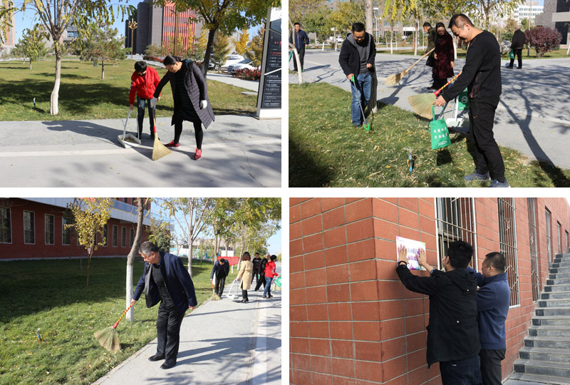 支部全體黨員在大學(xué)生活動中心門口、風(fēng)雨操場及校園馬路清掃落葉和垃圾,并對沿線衛(wèi)生死角進(jìn)行清理,對不文明行為進(jìn)行即時勸導(dǎo)。在教學(xué)樓、活動中心、公寓樓、食堂等建筑物的醒目位置張貼20余張“創(chuàng)建文明校園”、“禁止吸煙”等標(biāo)志。通過開展“創(chuàng)建文明校園”活動,進(jìn)一步提升我院“創(chuàng)建文明城市”迎檢和“創(chuàng)建文明校園”活動效果。