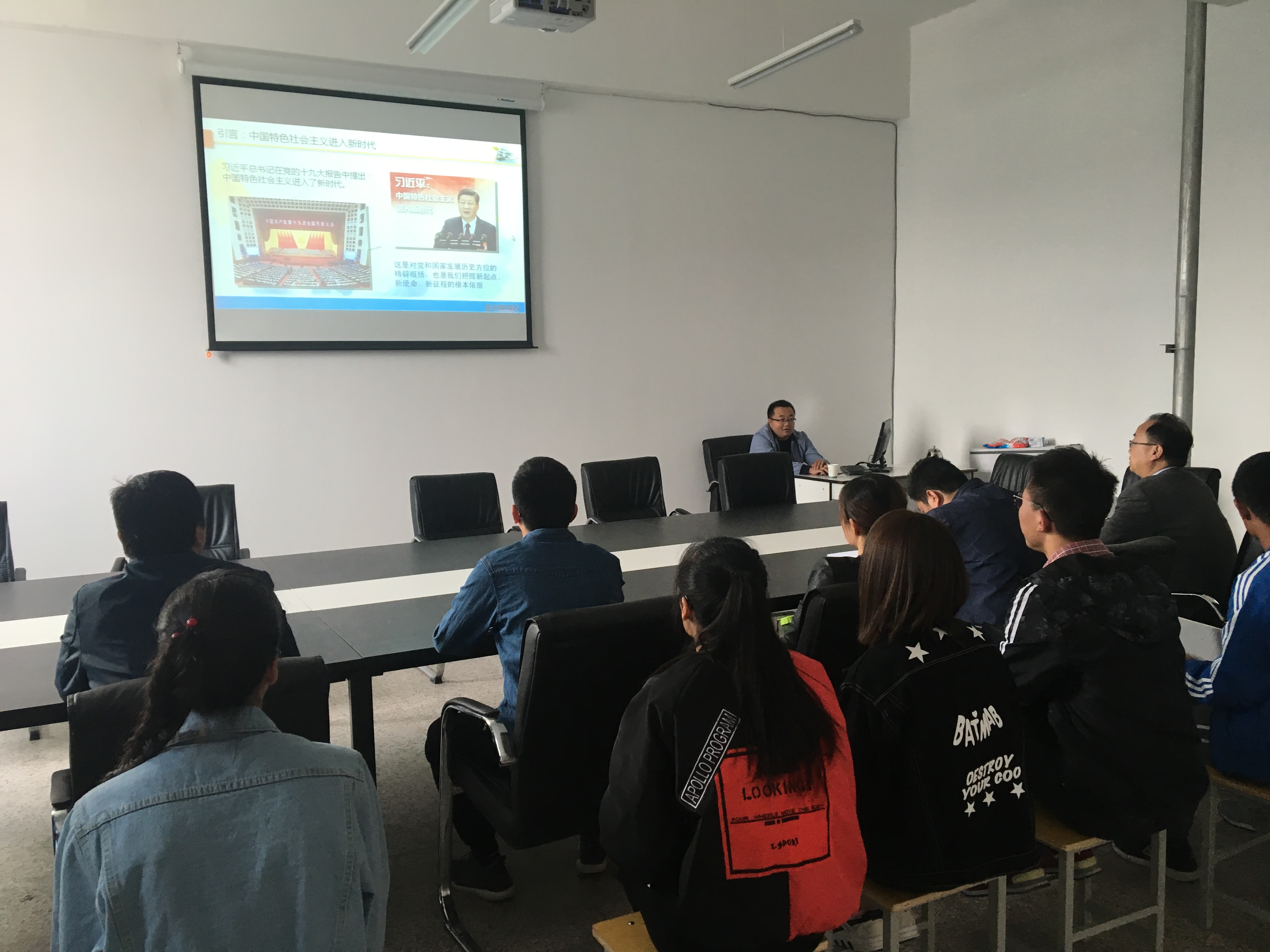 根據(jù)學院黨委《關(guān)于組織開展深入學習貫徹習近平新時代中國特色社會主義思想和黨的十九大精神主題宣講活動的通知》要求,4月3日下午,能源工程系黨總支組織開展宣講活動,邀請馬克思主義學院宣講組成員、組織人事處副處長魏全民為系黨總支全體黨員、教師和學生入黨積極分子進行習近平新時代中國特色社會主義思想和黨的十九大精神宣講。