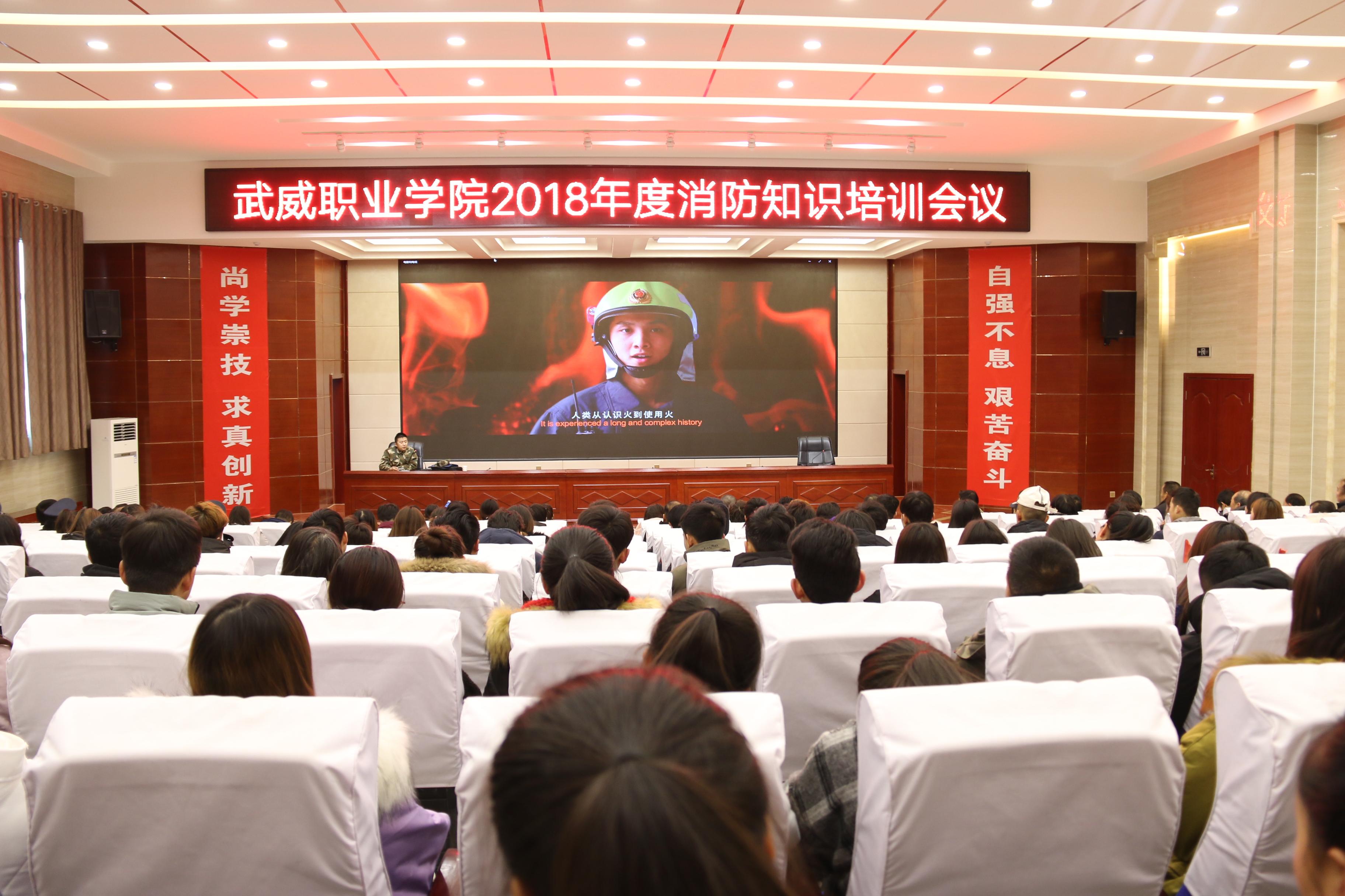 為切實做好我院冬春火災(zāi)防控工作,提高教職員工對消防安全工作的認識12月28日下午,學(xué)院在大學(xué)生活動中心菁英廳舉辦了消防安全知識培訓(xùn)。涼州區(qū)消防大隊教官楊燾應(yīng)邀作了專題講座。