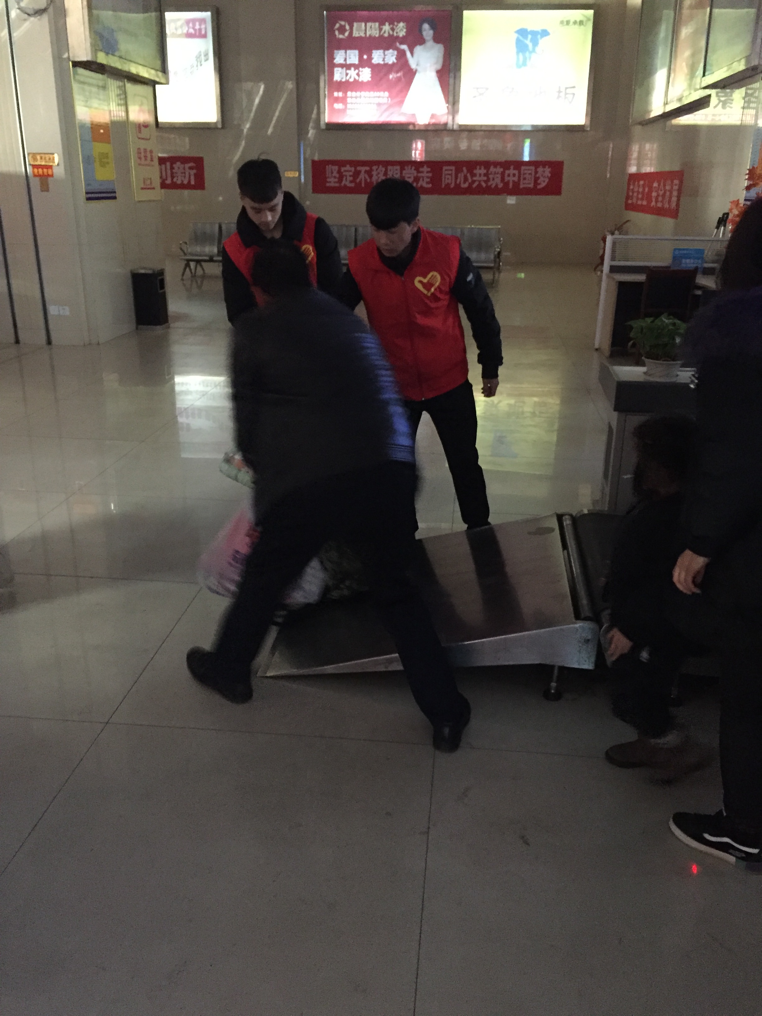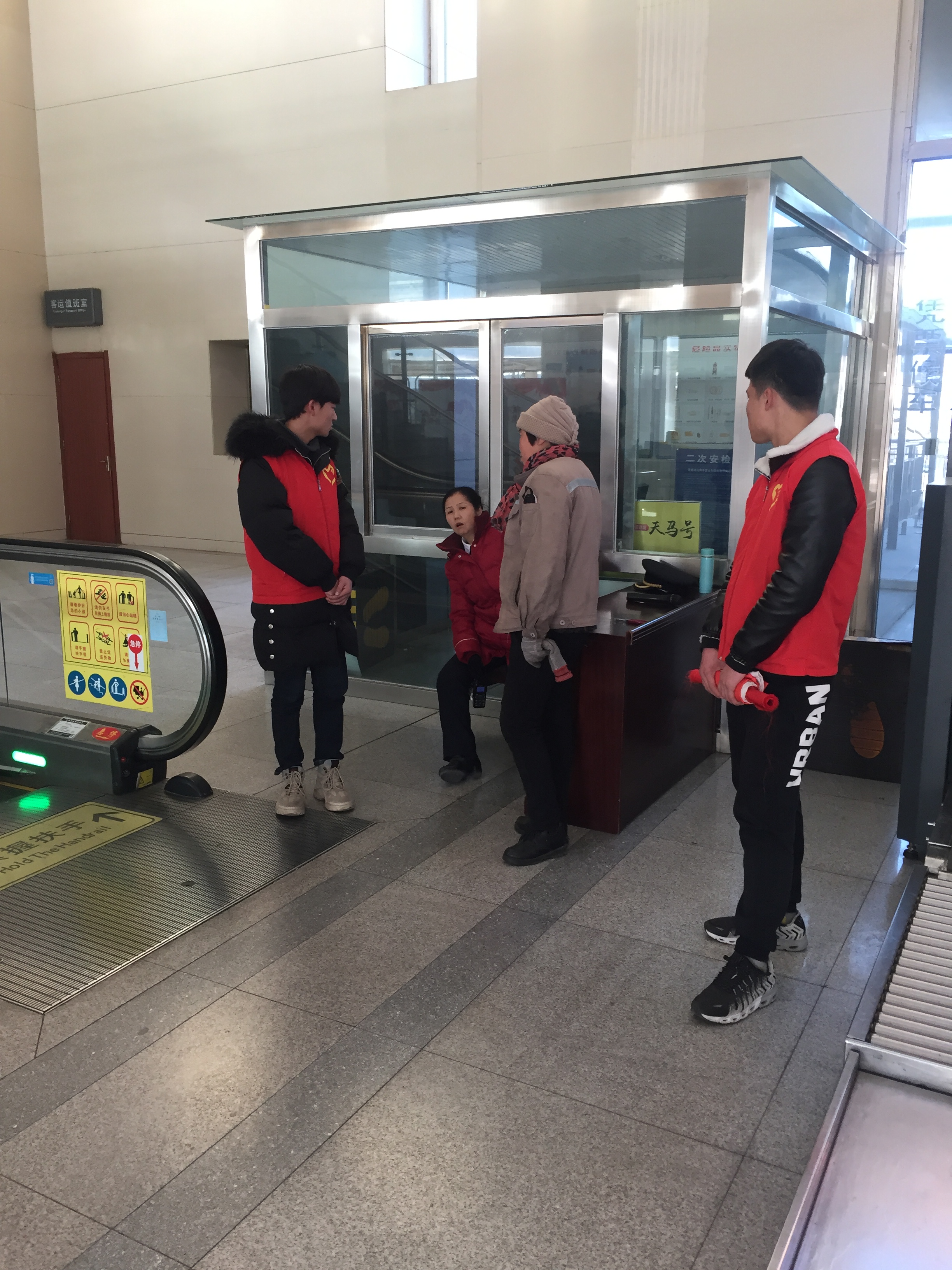 清晨,志愿者身著紅色小馬褂來到火車站和長途汽車站,開展以"志愿心,志愿行,志愿服務"為主題的志愿服務。組織幫助旅客搬行李、引導路線,為過往旅客引導咨詢、秩序維護、便民利民等方面開展志愿服務工作。?