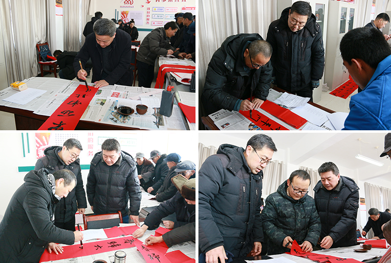為深入貫徹武威市委2019年節(jié)前脫貧攻堅工作要求,營造新春佳節(jié)喜慶氛圍,1月9日,學(xué)院赴古浪縣西靖鎮(zhèn)8號移民點、綠洲小城開展了“迎佳節(jié)送春聯(lián)送書畫文化進萬家”傳遞溫暖,助力脫貧攻堅現(xiàn)場寫春聯(lián)、送春聯(lián)、書畫展、送書畫活動。