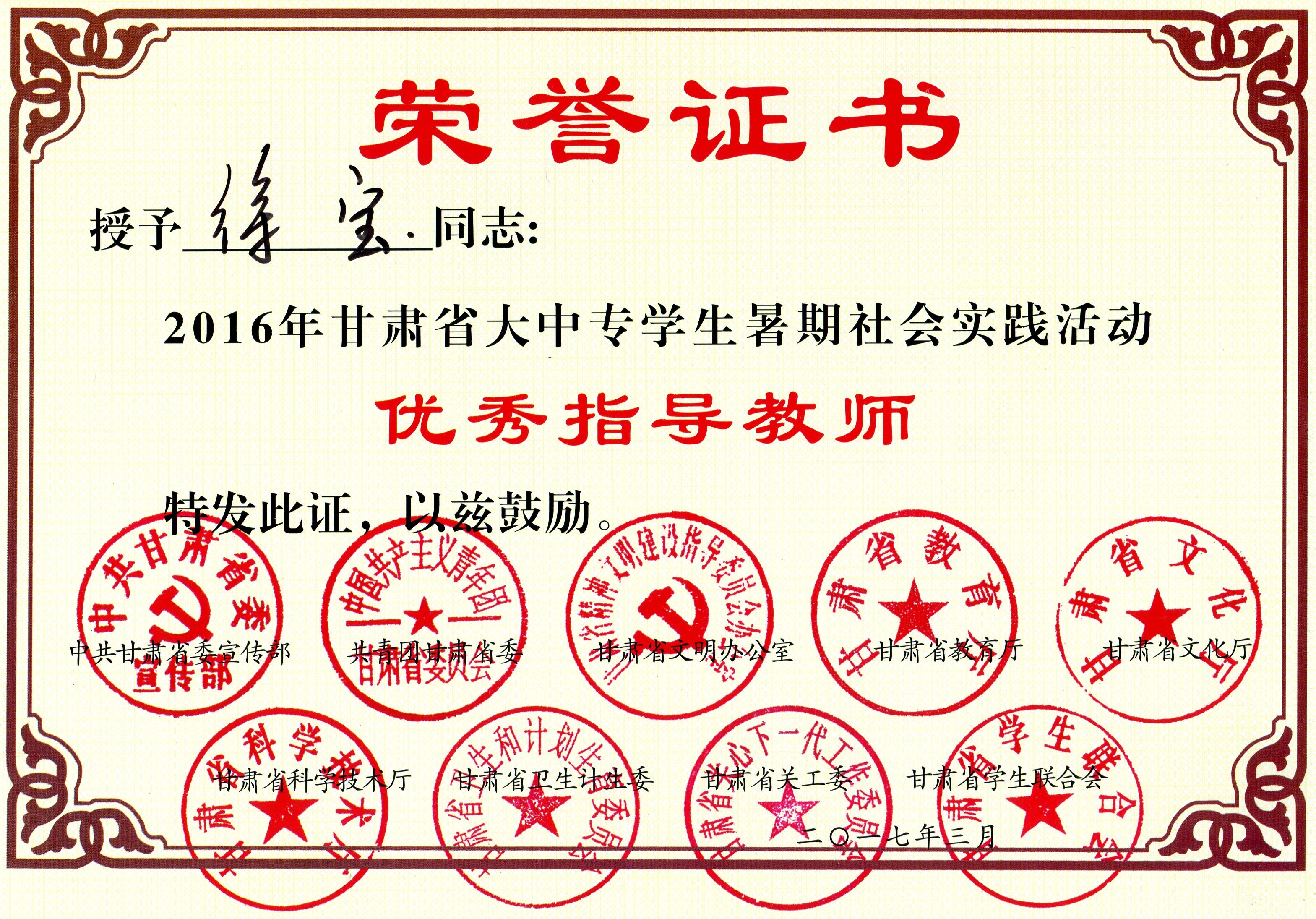 甘肅省大中專學(xué)生暑期社會實(shí)踐活動(dòng)優(yōu)秀指導(dǎo)教師