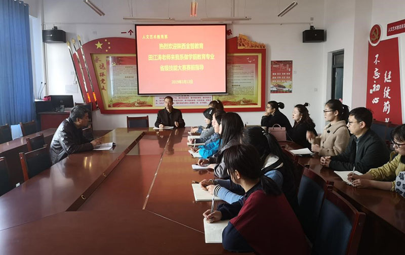 2019年3月13日下午,人文藝術(shù)教育系邀請陜西金智教育集團講師、山西省“國培計劃”學前教育專業(yè)領域客座講師田江濤老師到我系進行了學前教育專業(yè)省級技能大賽專題培訓講座,并對2019年甘肅省職業(yè)院校學前教育專業(yè)技能比賽的流程進行了指導。系副主任李欣、各專業(yè)教師及參賽學生參加。
