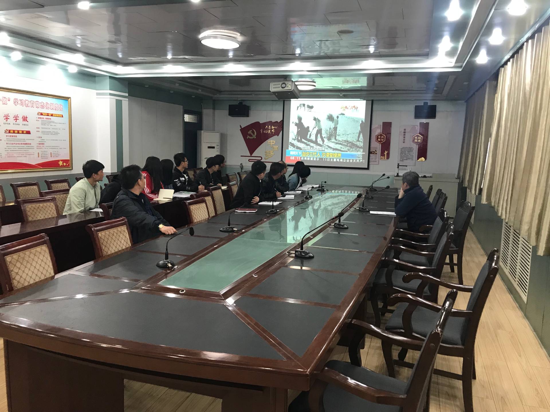 4月4日,建筑工程系黨總支組織全體黨員和入黨積極分子在博學樓黨員活動室召開“時代楷模-八步沙六老漢治沙造林先進群體”集中學習會。