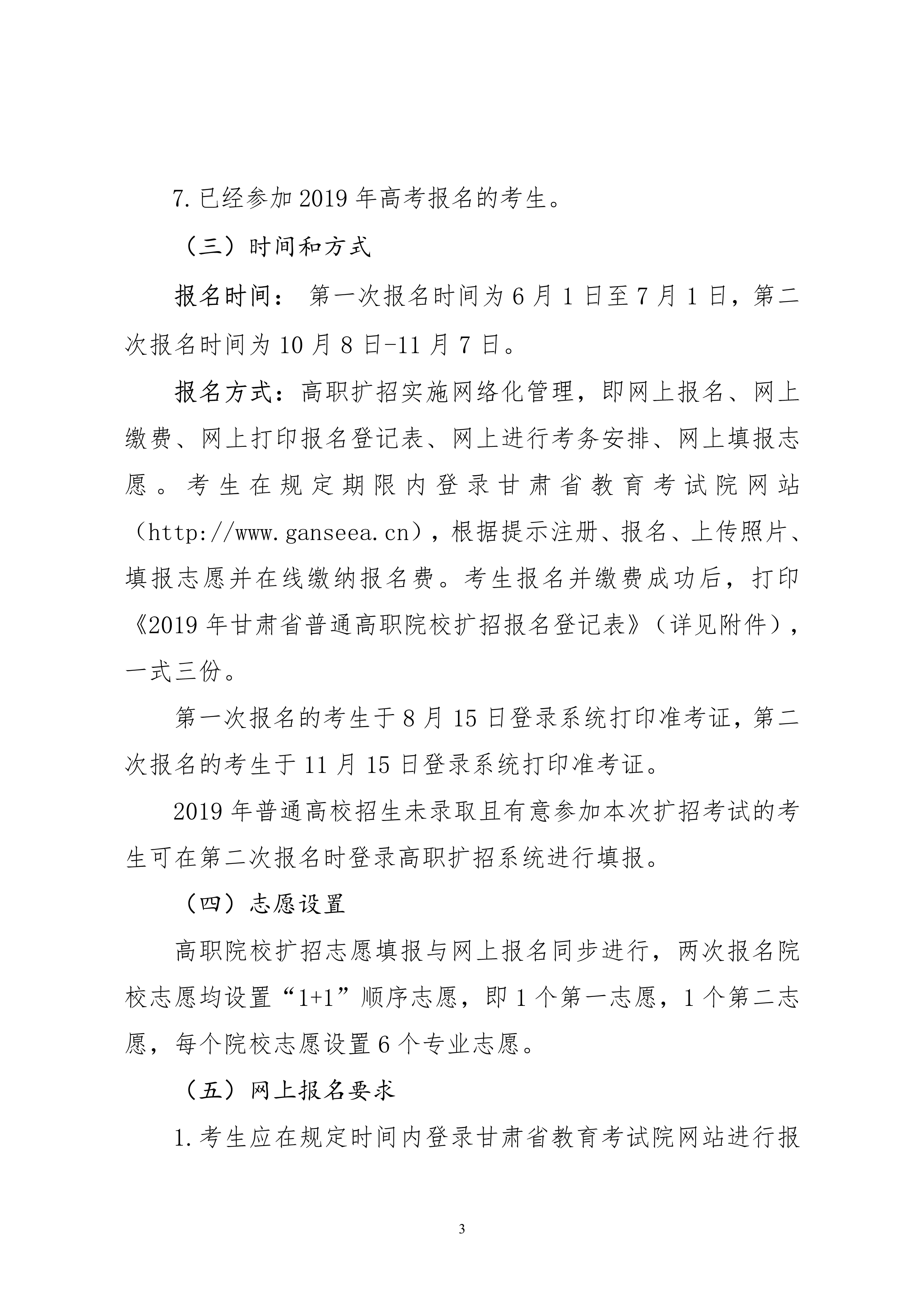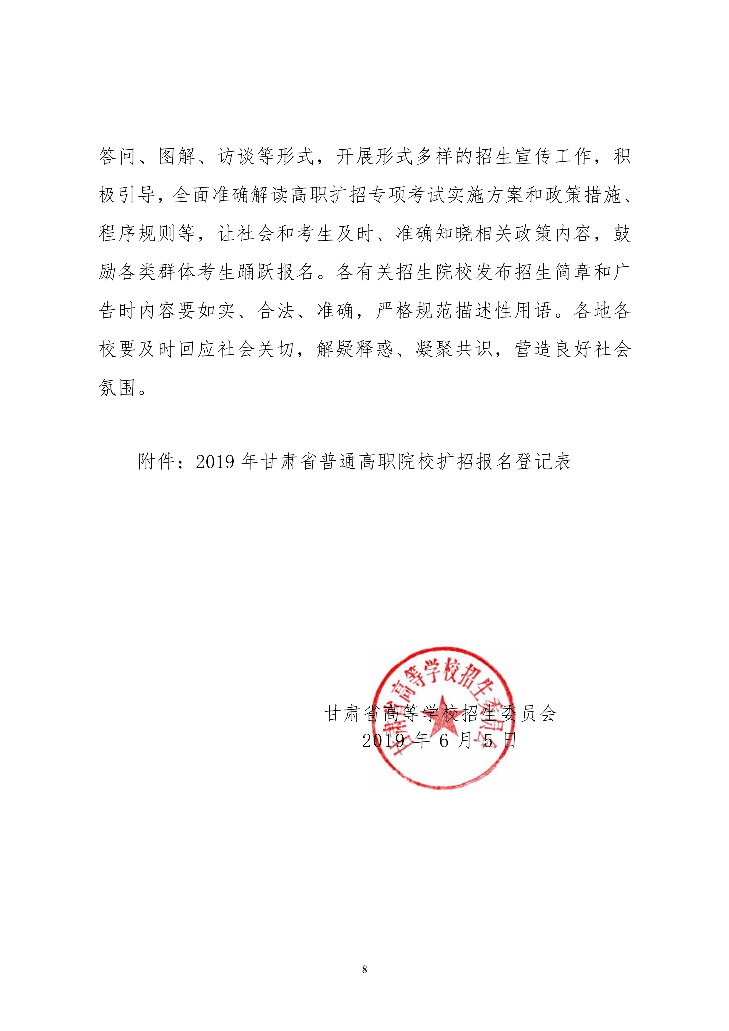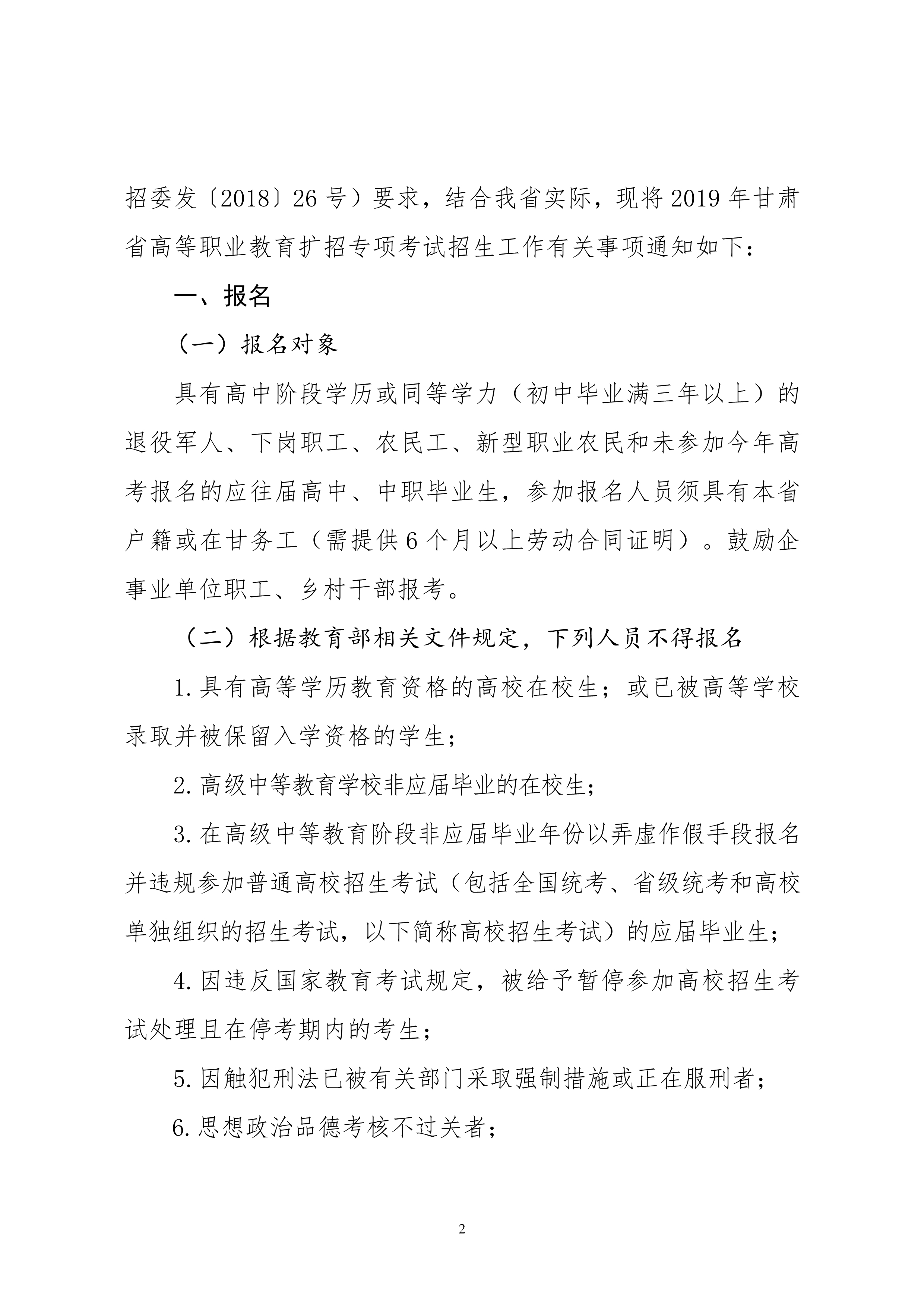 19年關(guān)于做好2019年甘肅省高等職業(yè)教育擴招專項考試招生工作的通知