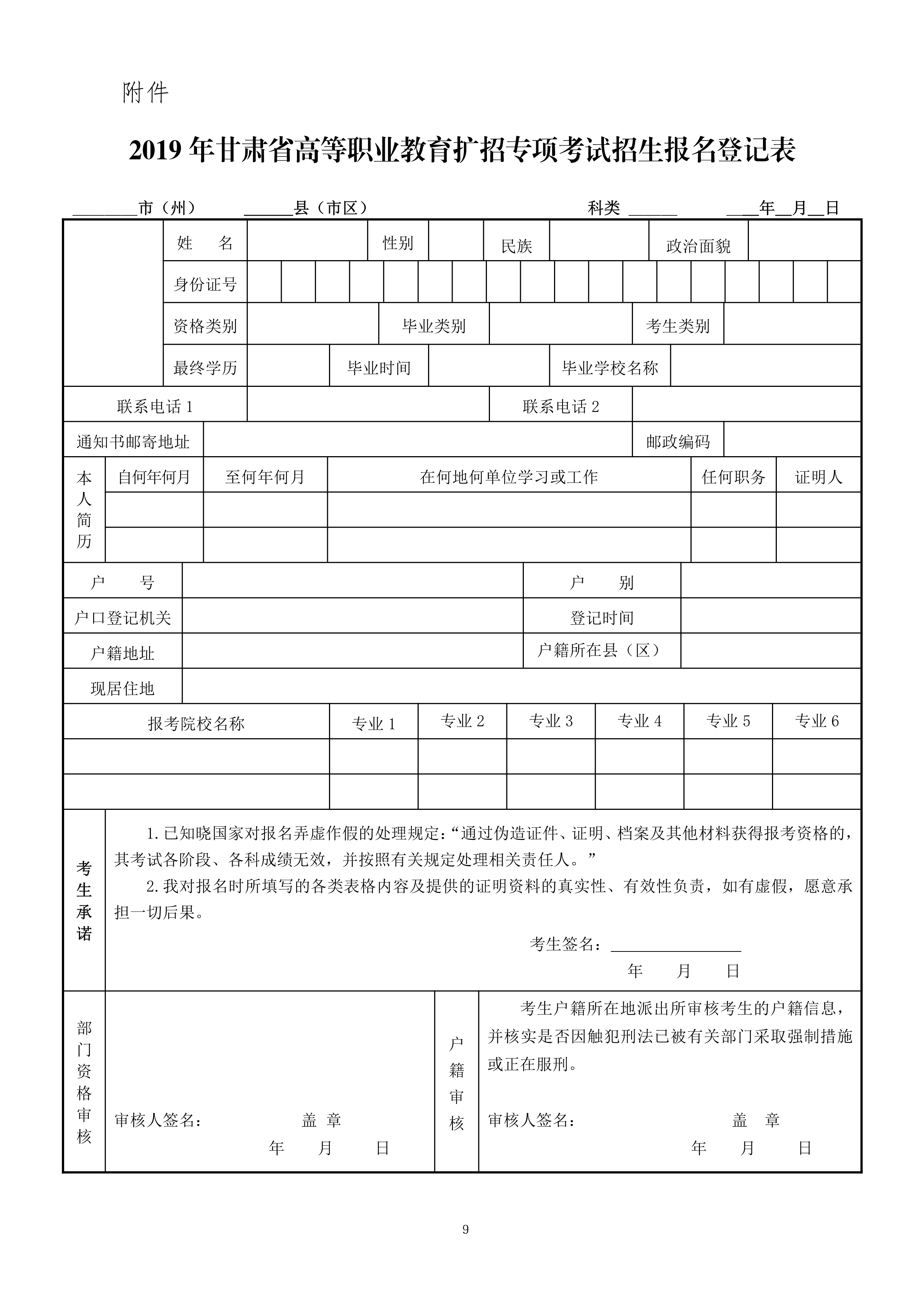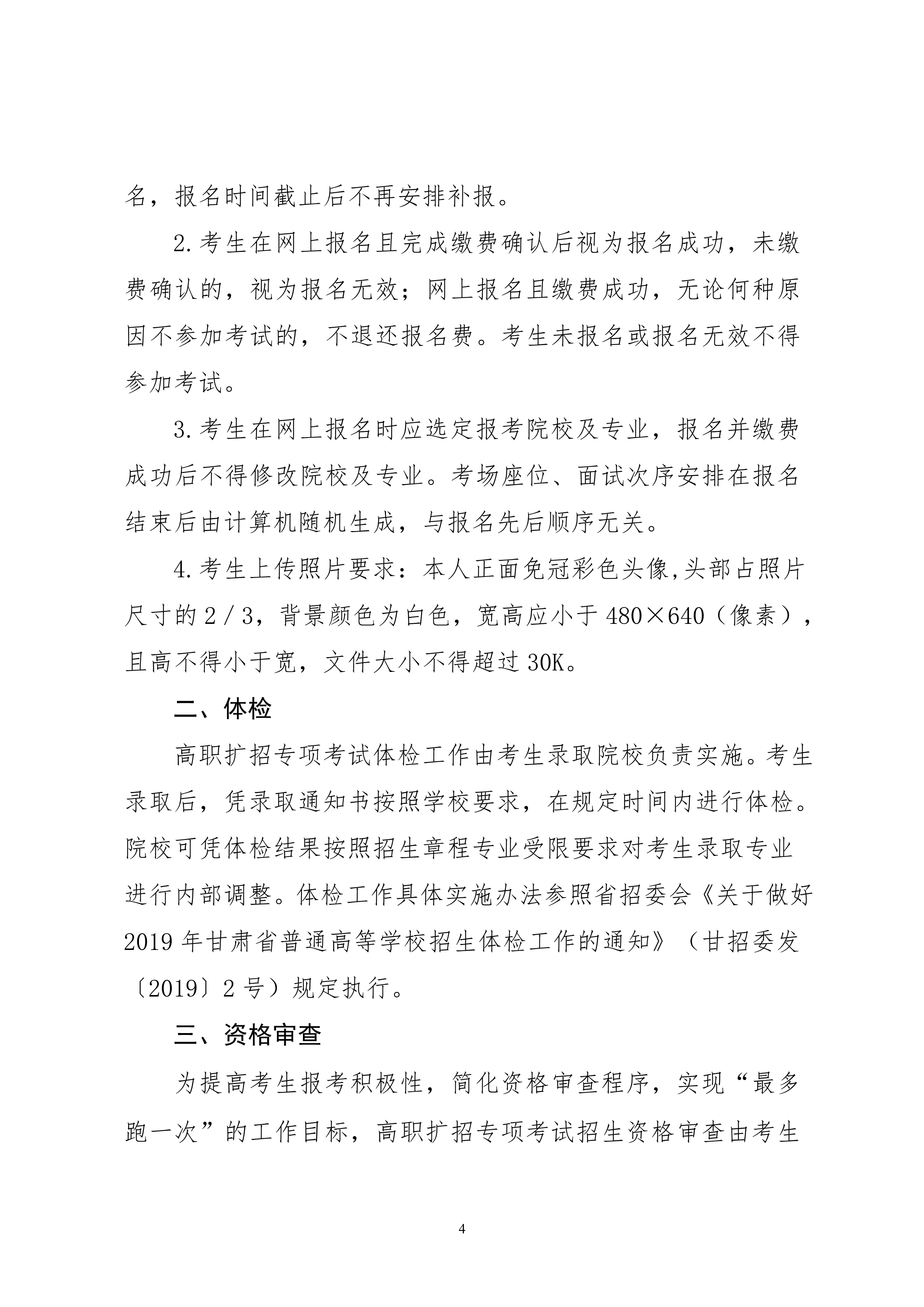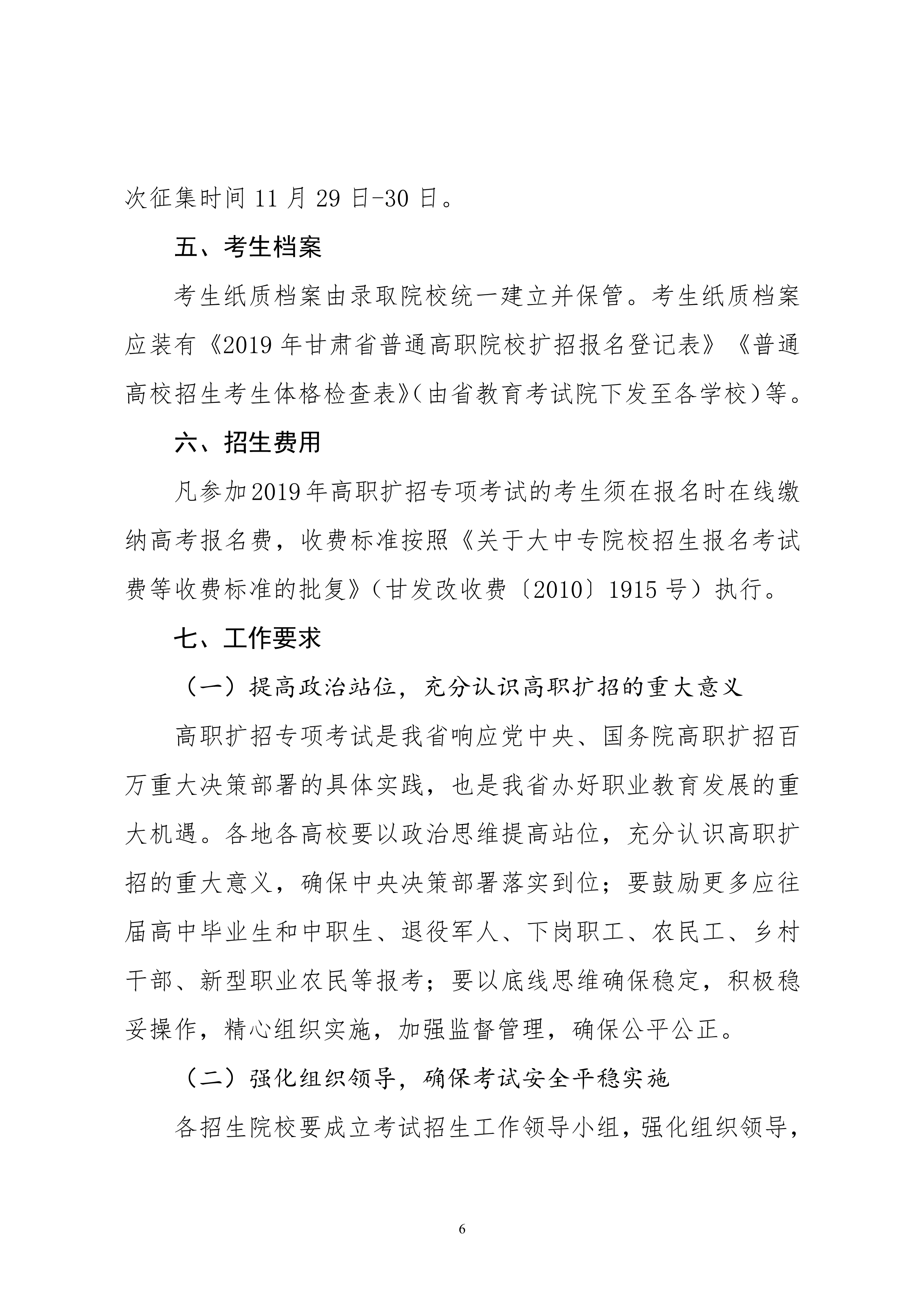 19年關(guān)于做好2019年甘肅省高等職業(yè)教育擴招專項考試招生工作的通知