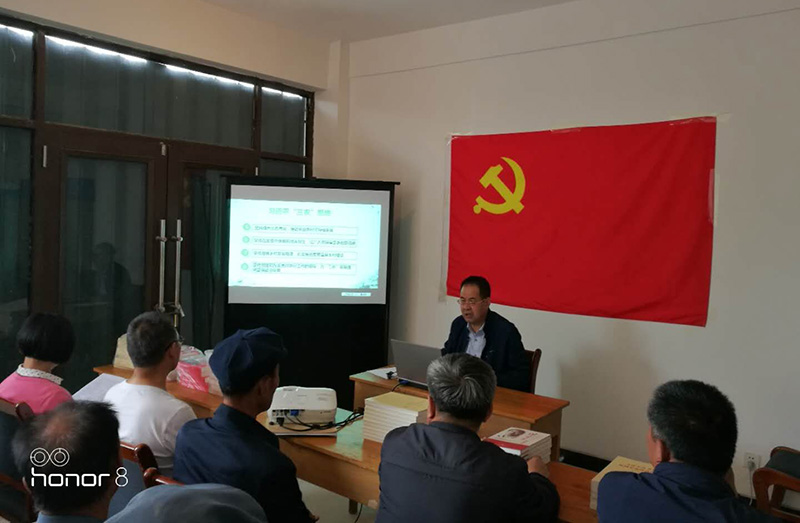 為做好抓黨建促脫貧攻堅和加強基層黨組織建設(shè),6月14日,學院領(lǐng)導、幫扶干部來到對口幫扶的移民點蘆草溝村、尚家臺村村委會為村民黨員講黨課,為蘆草溝村、尚家臺村黨組織、駐村工作隊、村民黨員贈送黨建書籍和掃黑除惡知識手冊。