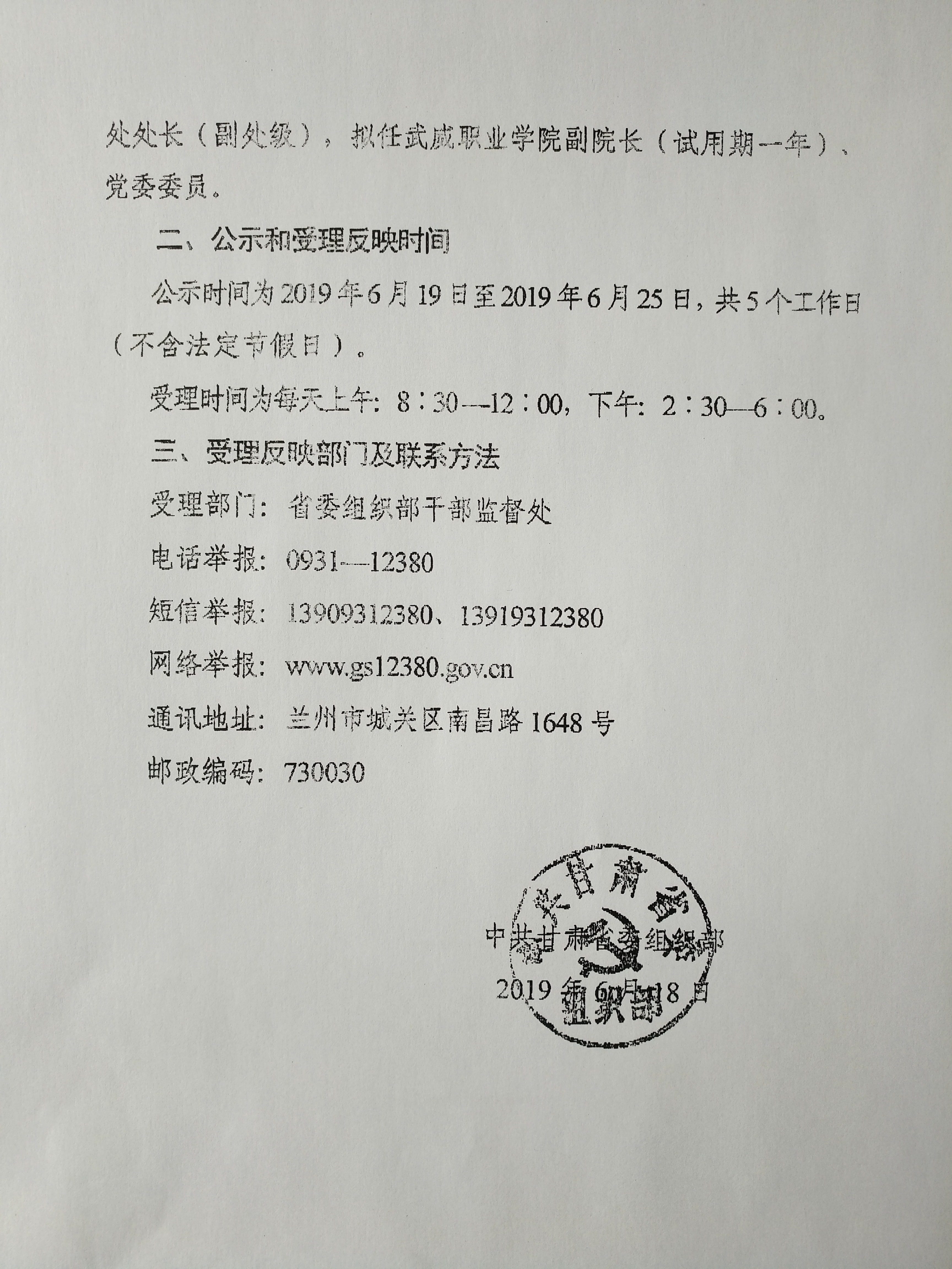 關(guān)于干部任前公示的公告