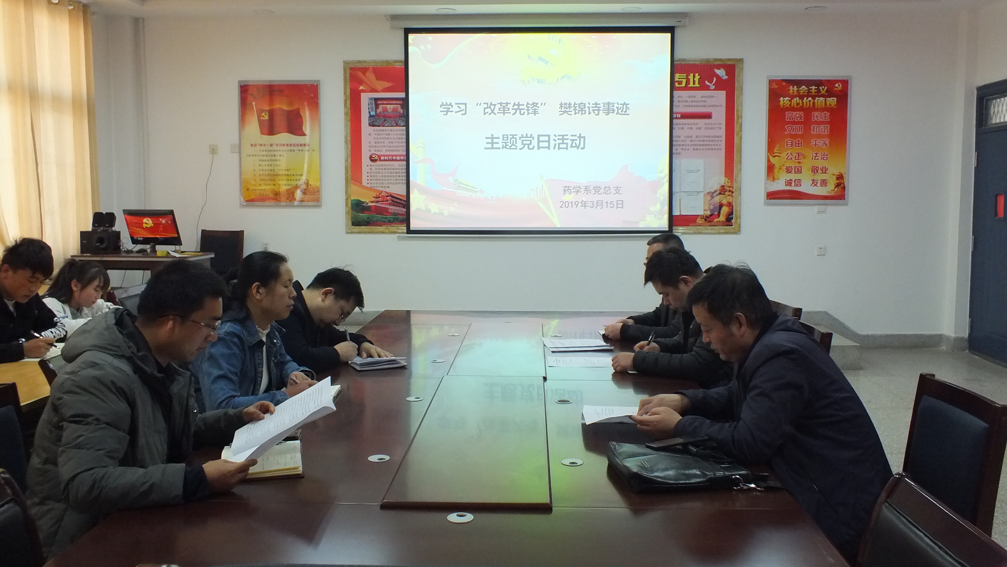 為響應(yīng)榜樣號召,傳承時代精神,3月15日,藥學(xué)系黨總支組織全體黨員在明遠樓103黨員活動室,開展了學(xué)習“改革先鋒”樊錦詩先進事跡主題黨日活動。系主任魏潤明參加了此次活動,系黨總支副書記單光年主持活動。