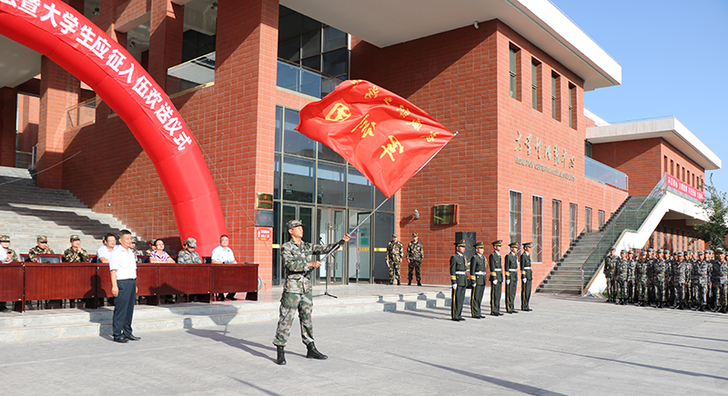 翟存祥代表學(xué)院向軍訓(xùn)教官表示衷心的感謝,祝愿應(yīng)征入伍的同學(xué)們在部隊(duì)進(jìn)一步譜寫人生華章,并向參加軍訓(xùn)的全體同學(xué)致以親切的問候。他指出,舉行大學(xué)生應(yīng)征入伍歡送儀式,就是要鼓勵(lì)大學(xué)生樹立“天下興亡,匹夫有責(zé)”的國防教育觀念,軍訓(xùn)旨在培養(yǎng)同學(xué)們的國防意識和愛國主義精神,培養(yǎng)同學(xué)們的組織紀(jì)律觀念,磨練同學(xué)們意志品德,培育和踐行社會(huì)主義核心價(jià)值觀!他要求參訓(xùn)學(xué)生要堅(jiān)守目標(biāo),做遵紀(jì)守法的優(yōu)秀戰(zhàn)士;要刻苦訓(xùn)練,做軍事訓(xùn)練的優(yōu)秀學(xué)子;要?jiǎng)?lì)志成才,做中國特色社會(huì)主義合格建設(shè)者和可靠接班人。他希望同學(xué)們牢記習(xí)近平總書記的殷殷囑托、諄諄教誨,不忘初心、牢記使命,勇于擔(dān)當(dāng)這個(gè)時(shí)代賦予的歷史責(zé)任,樹立遠(yuǎn)大理想,堅(jiān)持勵(lì)志勤學(xué),在激情奮斗中綻放青春光芒,立志成為中國特色社會(huì)主義偉大事業(yè)的有用人才。
