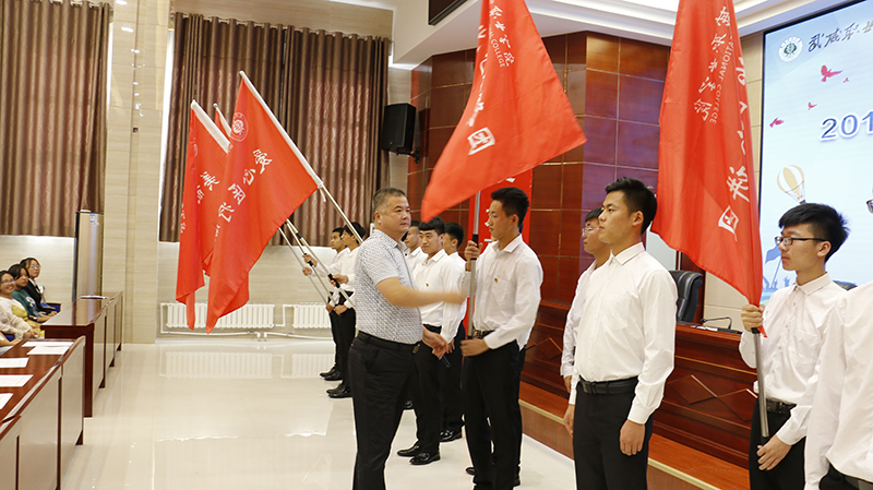 7月11日下午,學(xué)院2019年暑期“三下鄉(xiāng)”社會(huì)實(shí)踐活動(dòng)出征儀式在菁英廳舉行。黨委委員、副院長(zhǎng)、學(xué)生工作處處長(zhǎng)王守云出席活動(dòng)并為實(shí)踐團(tuán)隊(duì)授旗,院團(tuán)委全體干部、各系團(tuán)委書(shū)記、各實(shí)踐隊(duì)指導(dǎo)老師和隊(duì)員共160余人參加了出征儀式。