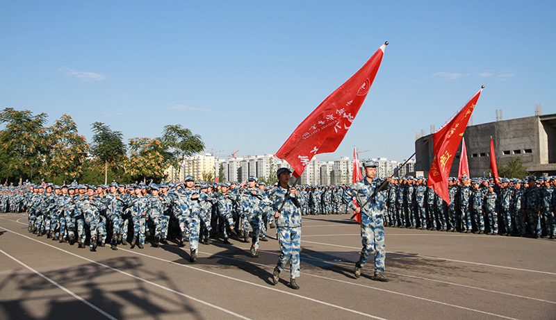 在軍訓總結(jié)大會上,學院紀委書記張富國同志宣布了2019級新生軍訓工作先進集體、先進個人、軍訓標兵名單。學院領(lǐng)導為軍訓工作先進集體、先進個人、軍訓標兵代表頒獎。學院黨委書記、院長、軍訓團政委趙明同志代表學院向關(guān)心這次軍訓的中國人民解放軍某部軍訓隊致以崇高的敬意,向14天來辛勤奮戰(zhàn)在訓練一線的55位教官表示衷心的感謝,并贈送錦旗。向堅守在訓練現(xiàn)場的各系輔導員、班主任致以誠摯的問候,向不怕吃苦、頑強拼搏、圓滿完成軍訓任務的同學們表示熱烈的祝賀!