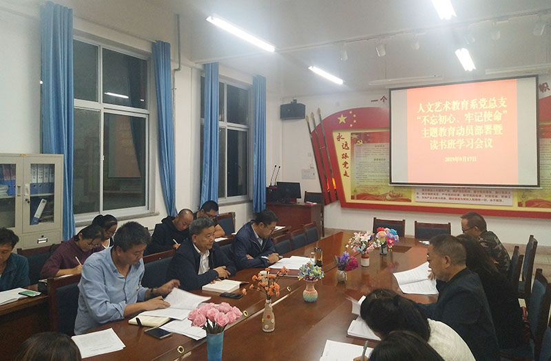 人文藝術(shù)教育系成立以黨總支書記為組長,系主任為副組長全體支部委員為成員的“不忘初心、牢記使命”主題教育領(lǐng)導(dǎo)小組;制定人文藝術(shù)教育系黨總支“不忘初心、牢記使命”主題教育工作方案和人文藝術(shù)教育系黨總支讀書班學(xué)習(xí)實施方案;召開人文藝術(shù)教育系黨總支“不忘初心、牢記使命”主題教育學(xué)習(xí)動員大會暨讀書班學(xué)習(xí)會議啟動儀式,動員安排主題教育工作。