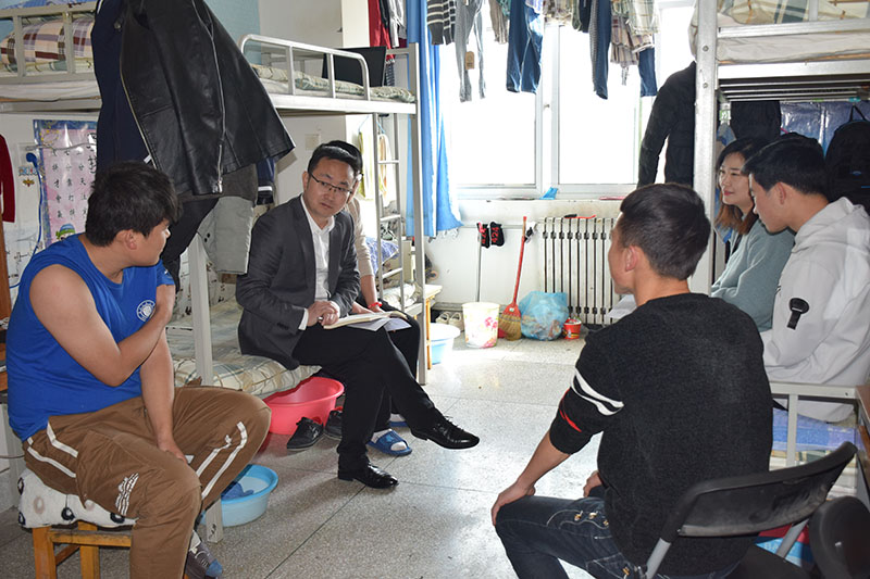 活動中,黨支部書記任陶宣讀《新能源與動力工程學院辦公室黨支部教師黨員聯(lián)系學生宿舍制度》,并對具體工作作出安排。他強調深入學生中要努力做到“六心”:了解學生要細心,思想教育要耐心,心理疏導要貼心,成才引導要熱心,平時相處要交心,幫困解難要有愛心。緊接著,全體黨員進入3#公寓和7#公寓,開展三幫(幫思想、幫學習、幫生活)和兩導(對學生進行長才引導和心理疏導)工作。黨員們分別到所聯(lián)系的宿舍,與學生展開親切的交流、座談,詳細詢問他們在生活和學習中存在的問題,并對同學們在教育教學和學生管理方面提出的意見建議做了詳細的記錄。