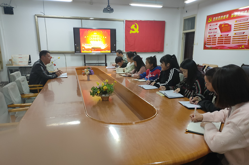學生支部書記姚盈老師帶領全體黨員學生重溫學習習總書記在黨的十九大報告中提出的“不忘初心,牢記使命”,用黨的理論武裝頭腦,加強青年學生的理論素養(yǎng)。