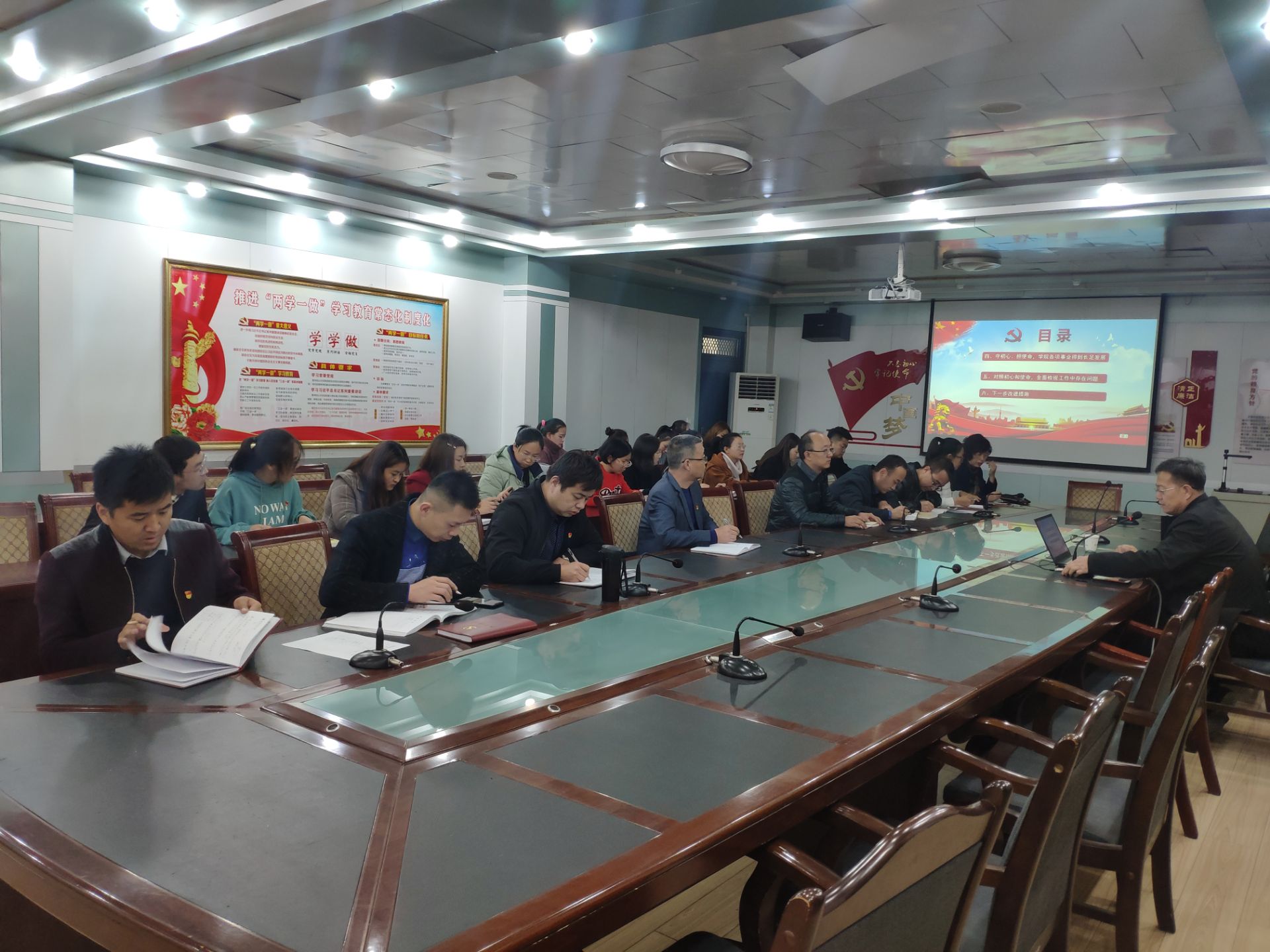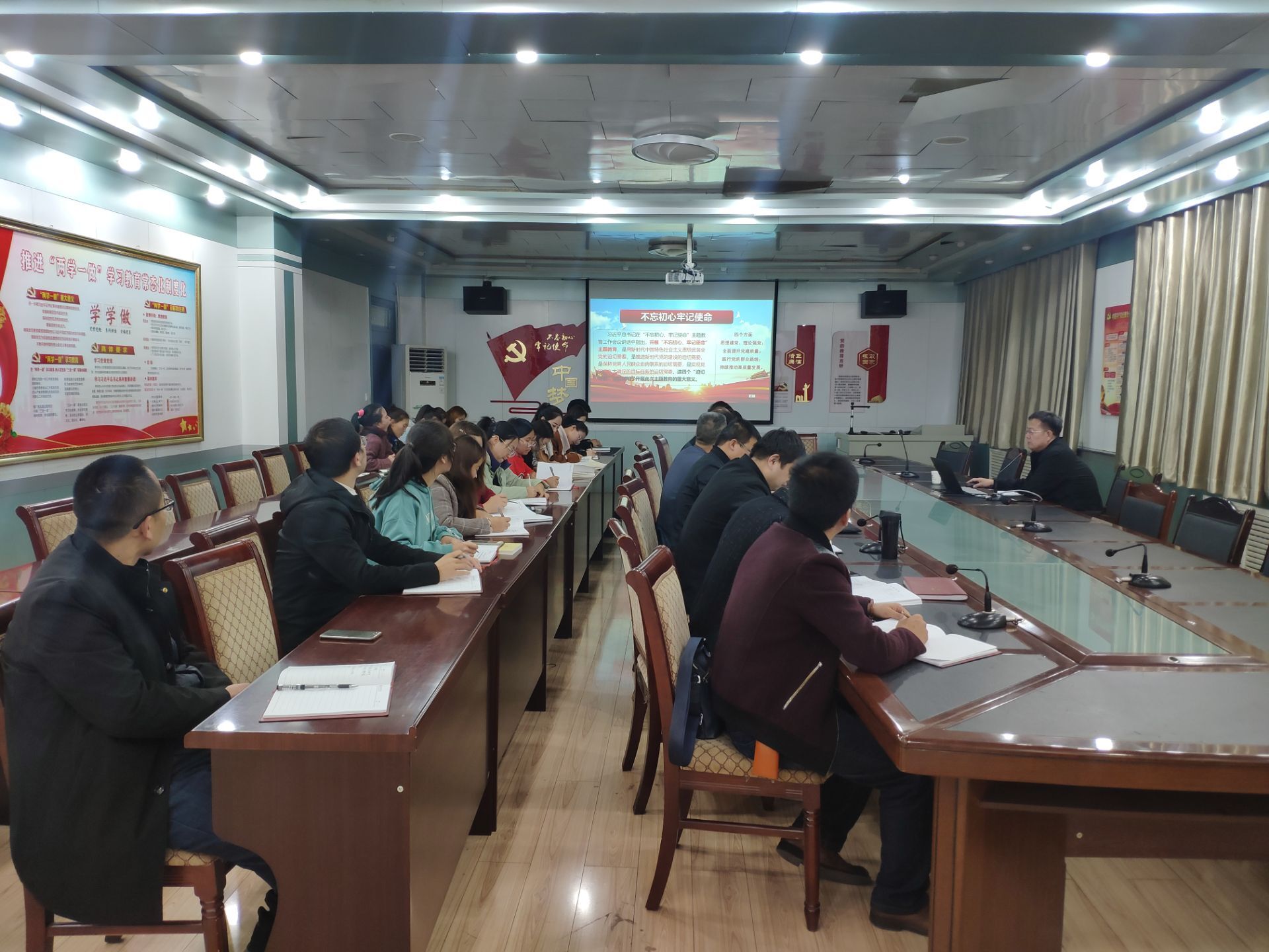 張開禮通過分析“不忘初心、牢記使命”主題教育的重大意義,指出“初心“、”使命”的豐富內(nèi)涵,身為中國共產(chǎn)黨員要堅守馬克思主義信仰、堅持黨領導一切工作、堅持全心全意為人民服務。張開禮指出,全體黨員要堅持讀原著、學原文、悟原理,在學深悟透習近平新時代中國特色社會主義思想上下功夫;以 “三會一課”、主題黨日等為重點,全面加強理論學習,結(jié)合主題教育重點解決好理想信念、責任擔當和執(zhí)行落實等問題上踐行初心和使命。