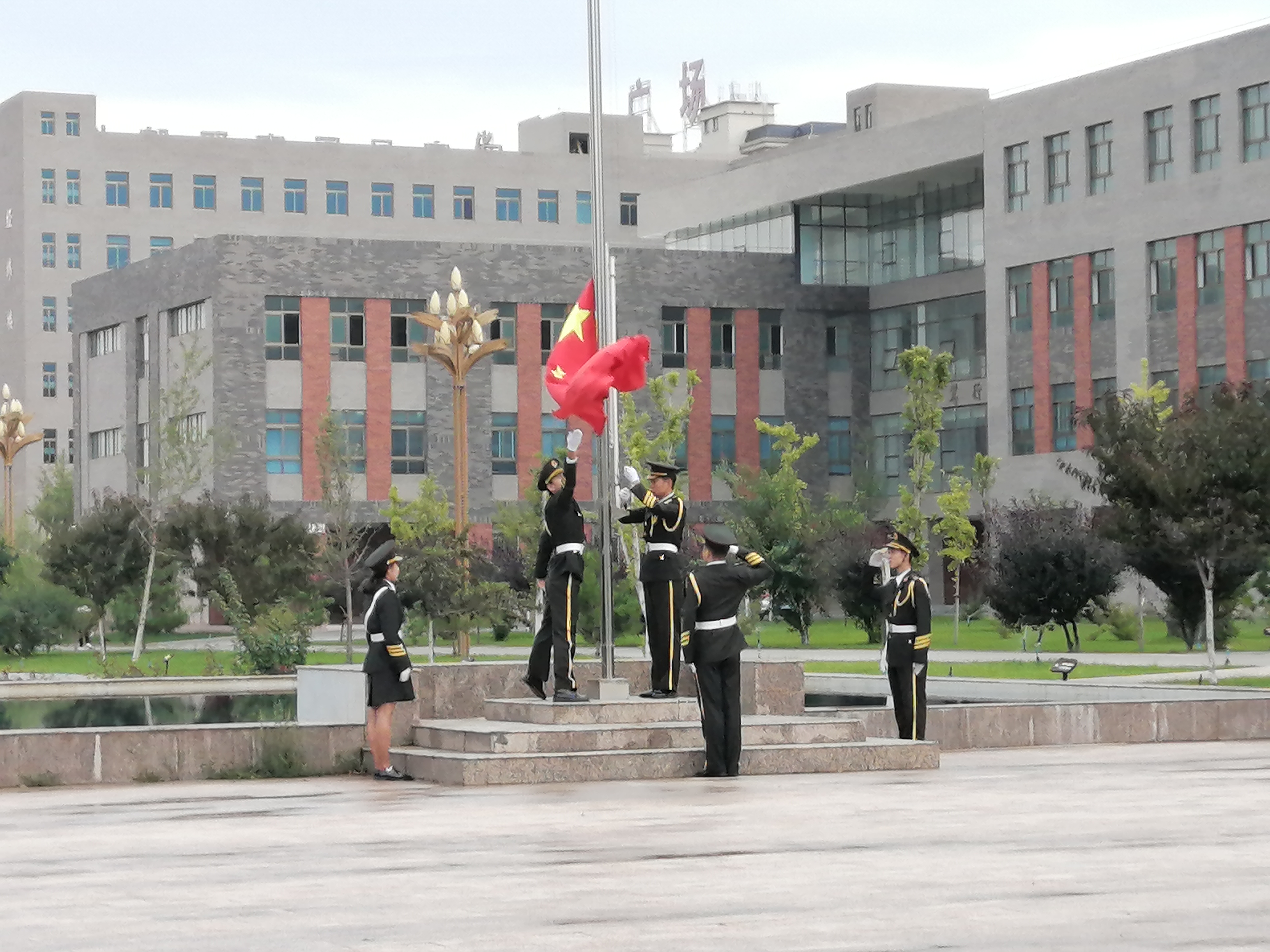 ?一切準(zhǔn)備就緒,由主持人唐鑫基老師宣布升旗儀式正式開(kāi)始后,英姿颯爽的5名國(guó)旗隊(duì)旗手邁著矯健的步伐,護(hù)衛(wèi)著國(guó)旗走到廣場(chǎng)旗桿前,伴著莊嚴(yán)嘹亮的國(guó)歌,五星紅旗冉冉升起,全體師生懷著崇敬與喜悅的心情,凝視著迎風(fēng)飄揚(yáng)的五星紅旗,心中無(wú)比自豪。在場(chǎng)的每一個(gè)人向國(guó)旗行注目禮,深懷對(duì)祖國(guó)無(wú)限的熱愛(ài)和崇高的敬意。隨后,由學(xué)生代表陳雅麗在國(guó)旗下演講。