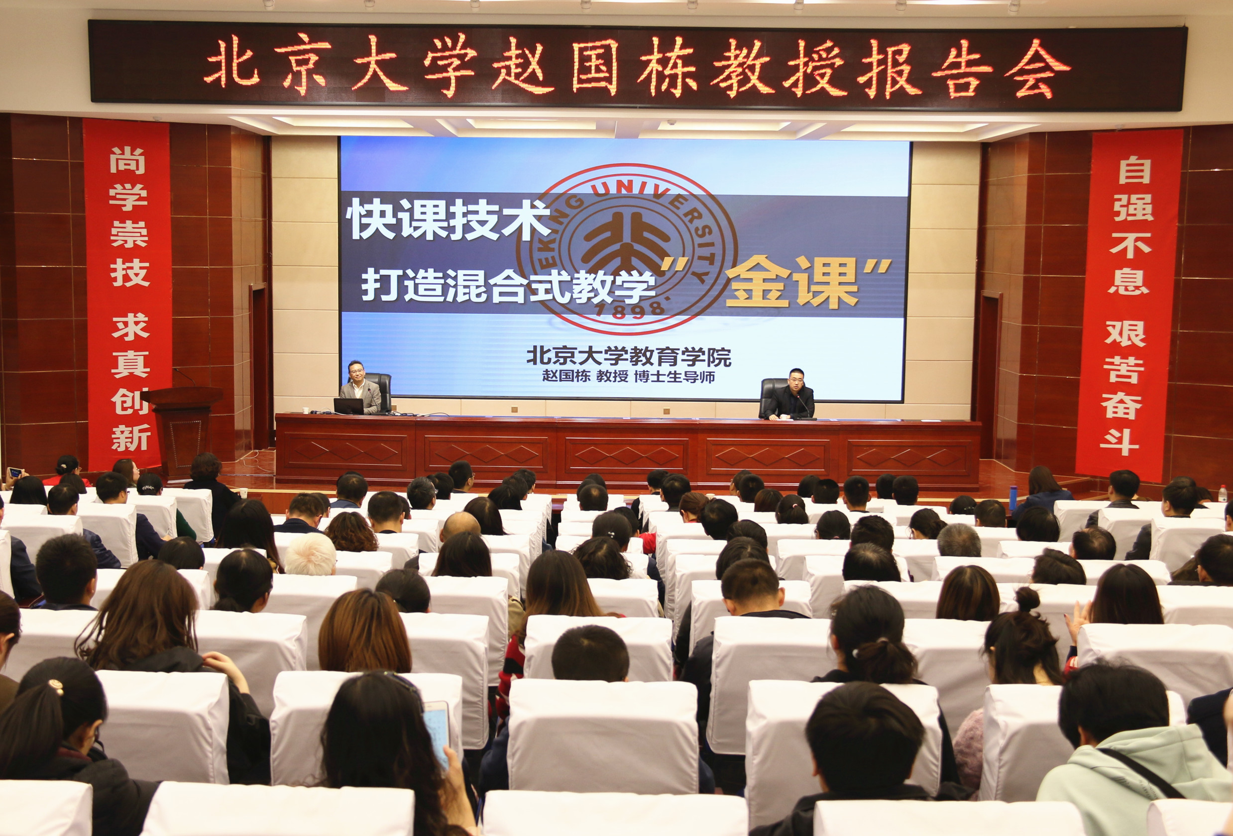4月15日,北京大學(xué)博士生導(dǎo)師,微課技術(shù)實(shí)驗(yàn)室主任,“國際信息研究學(xué)會”(IS4IS)中國分會教育信息化專業(yè)委員會副主任, “中國開放式教育資源協(xié)會”(CORE)專家趙國棟教授,應(yīng)邀到學(xué)院作專題報告。 教務(wù)處副處長張世亮主持報告會,甘肅冶金職業(yè)技術(shù)學(xué)院、甘肅畜牧工程學(xué)院、武威職業(yè)教育集團(tuán)、蘭州交通大學(xué)新能源與動力工程學(xué)院以及各系教師代表220人聆聽了報告。