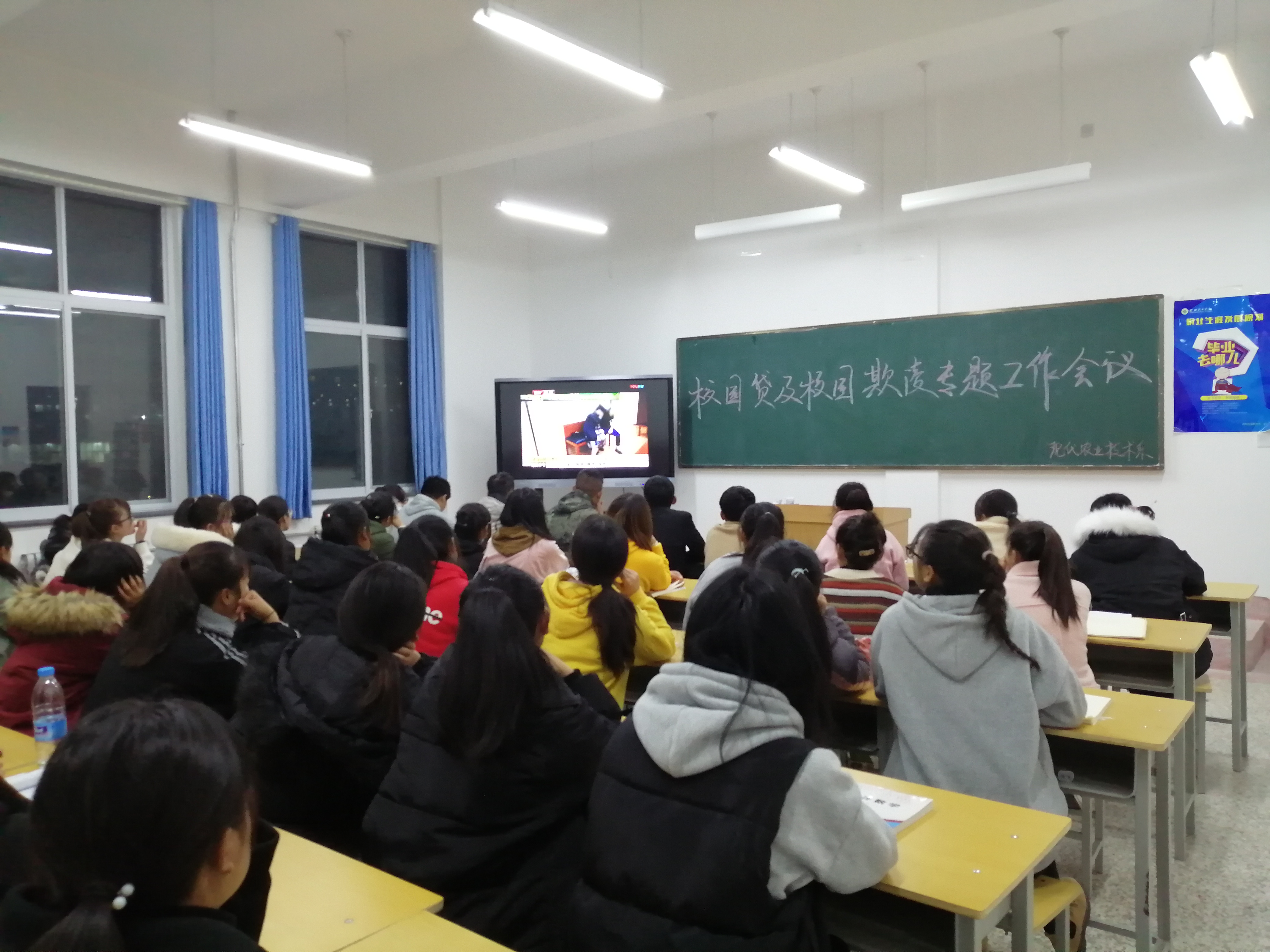 11月21日晚,現(xiàn)代農(nóng)業(yè)技術(shù)系在行樹樓教學(xué)區(qū)307教室開展“校園貸及校園欺凌”主題教育活動,全系大一學(xué)生參加了此次活動,活動由系輔導(dǎo)員蔡海老師主持。