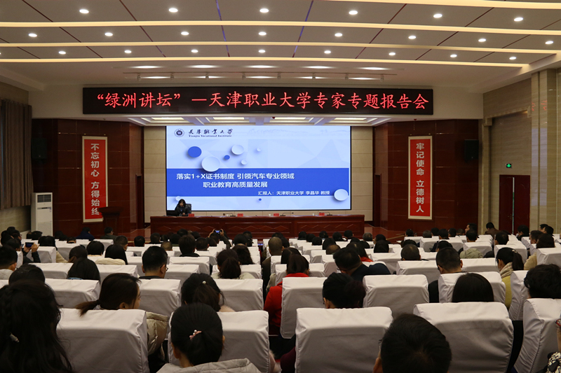 報(bào)告會(huì)上,天津職業(yè)大學(xué)副校長(zhǎng)楊榮敏、天津職業(yè)大學(xué)合作教育辦公室王昆教授、天津職業(yè)大學(xué)汽車工程學(xué)院院長(zhǎng)、博士、汽車維修技師李晶華教授分別做了題為《魯班工坊——中國職業(yè)教育國際知名品牌》《產(chǎn)業(yè)學(xué)院融入思政元素路徑與實(shí)踐》《落實(shí)1+X證書制度,引領(lǐng)汽車專業(yè)領(lǐng)域職業(yè)教育高質(zhì)量發(fā)展》的報(bào)告。學(xué)院領(lǐng)導(dǎo)和副科級(jí)以上中層管理干部、各系教研室主任、骨干教師、青年教師代表參加報(bào)告會(huì)。