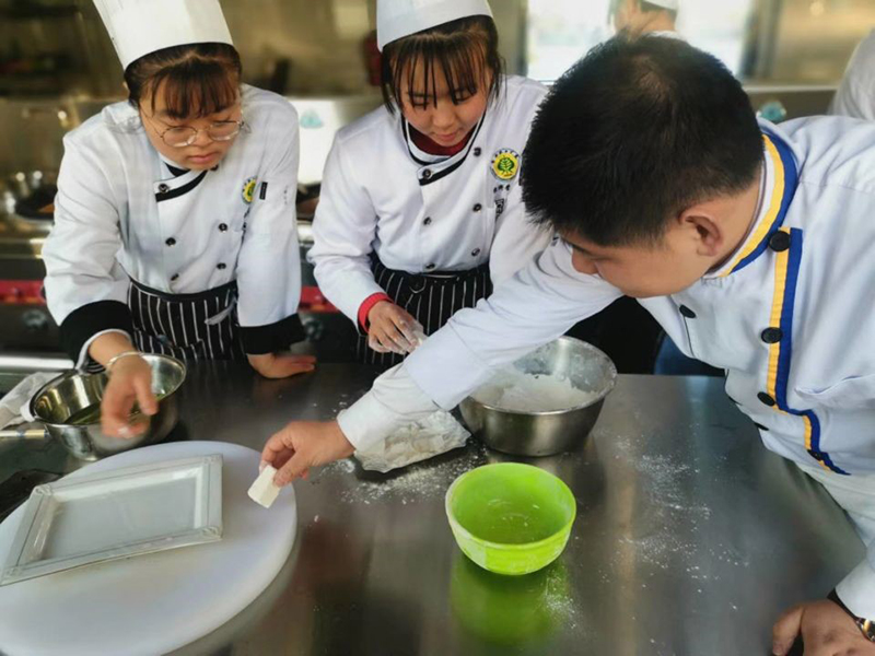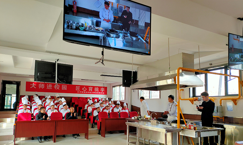 2019年12月13日,王品(中國)餐飲有限公司西安店主廚畢朝威,12月26日,山東藍(lán)海集團(tuán)大廚郭玉忠分別為經(jīng)濟(jì)管理系烹調(diào)工藝與營(yíng)養(yǎng)專業(yè)120多名學(xué)生進(jìn)行鵝肝制作、果盤制作、面點(diǎn)制作、熱菜制作的廚藝表演,并在現(xiàn)場(chǎng)與系部領(lǐng)導(dǎo)交流、對(duì)學(xué)生分享廚藝心得和技術(shù)要領(lǐng)。